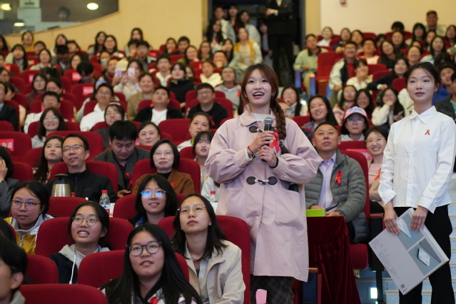 “如果不幸患了艾滋病,長期服用藥物會有哪些副作用?”面對學生的困惑,白巖松用“感冒自愈”與“艾滋病必須服藥”的生動對比,巧妙闡釋了堅持治療的必要性。他強調“惡性傳染病是做乘法,不是做加法”,表示所有恐懼都來源于未知,所有風險都來自不確定性,希望大家通過掌握科學知識消除未知的恐懼,通過負責任的行為減少健康風險的不確定性。現場不僅探討了“什么是艾滋病”,更深入至“如何看待與艾滋病相關的歧視與恐懼”“如何在保護自己的同時傳遞溫暖與善意”等命題。專家們的真知灼見與幽默坦誠的交流,贏得了陣陣掌聲,使“防艾”不再是一個冰冷的醫學口號,而升華為一場關于生命教育、責任教育與人格教育的公開課。