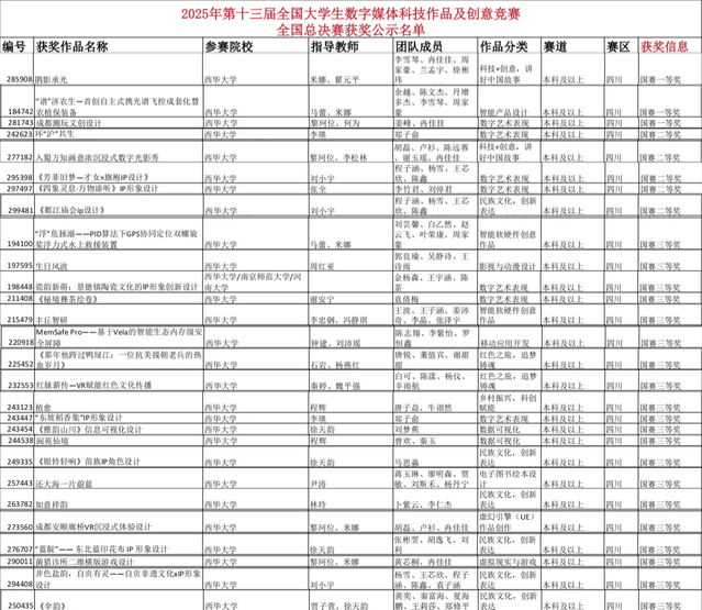 此次競賽佳績的取得,既是西華大學深耕學生全面發展理念的生動實踐,也是學校推動多學科交叉融合育人模式取得的顯著成效。不同學院在指導過程中打破學科壁壘,將人文創意、工程技術與智能科技深度結合,既錘煉了學生的專業技能,更培養了其跨界思維與創新能力。