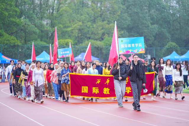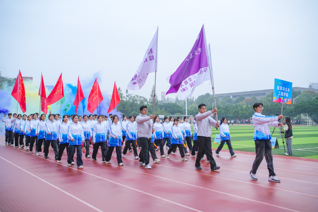 在《運(yùn)動(dòng)員進(jìn)行曲》的激昂旋律中,運(yùn)動(dòng)會(huì)盛大開幕。各支方隊(duì)帶著飽滿的精神,身姿挺拔,目光堅(jiān)定,邁著整齊劃一的步伐走向主席臺(tái)。他們的目光傳遞著青春能量,響亮的口號(hào)展示著西華風(fēng)貌。航空航天與智能裝備學(xué)院方隊(duì)手握模型,盡顯航空人的創(chuàng)新活力與實(shí)干精神;音樂與舞蹈學(xué)院方陣舞姿曼妙,盡顯蓬勃朝氣和青春活力;電氣與電子信息學(xué)院方隊(duì)目光專注,展現(xiàn)科技風(fēng)采與探索熱情;汽車與交通學(xué)院方隊(duì)在方程式賽車引領(lǐng)下,以嚴(yán)謹(jǐn)姿態(tài)與硬核實(shí)力,彰顯創(chuàng)新底氣;國際教育學(xué)院方隊(duì)的留學(xué)生們身著各國服飾,盡顯文化交流的包容與魅力……體育學(xué)院方隊(duì)壓軸登場,一段活力四射的體育舞蹈,瞬間點(diǎn)燃全場激情。各方隊(duì)步伐鏗鏘,目光熾熱,激情交織,為運(yùn)動(dòng)場注入了蓬勃的青春氣息。