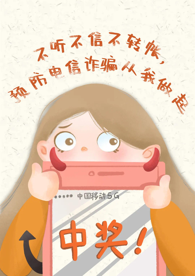 本次活動共收到了參賽作品近100份,經過專家評審,最終評選出一、二、三等獎和優秀獎共計29項。同學們在此次文創設計比賽中發揮創意,結合現實網絡詐騙手段,融合現代技術,創作出了一批活靈活現、趣味盎然的文創作品。一等獎獲獎作品、梁宇同學創作的《防詐宣傳系列插畫》運用了漫畫加標語的形式,將網絡流行語與生動的插畫相融合,以極富親和力的方式向大家展現了“中獎”“股票”“虛擬電話”等網絡詐騙手段。一等獎獲獎作品、劉靜瑤同學創作的《致富十年功,詐騙一場空》則從標題到畫風都極具沖擊力,通過“金錢”“電腦”“魔鬼”等要素展現了網絡詐騙的本質,體現了作者通過現象看到本質的洞察力及別開生面的創造力。此外,還有許多同學踴躍投稿參賽,通過文化融合產品的宣傳手段,以多方面、多角度、多創意的形式表達了他們對網絡詐騙的認識。
