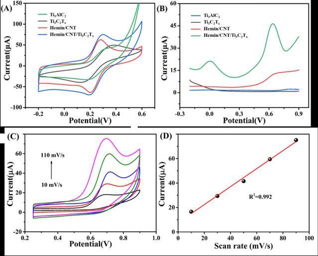 Hemin/CNT/Ti?C?T?的電化學傳感性能得到顯著提升。