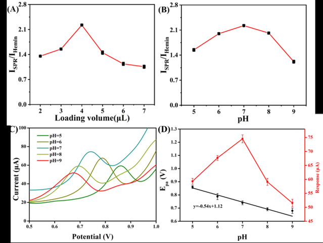 修飾體積、pH條件優化及峰電位與pH的線性關系