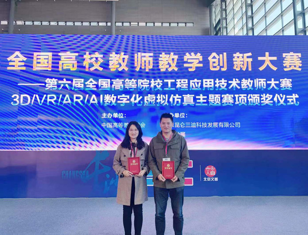 近日,全國高校教師教學創新大賽——第六屆全國高等院校工程應用技術教師大賽舉行,來自全國的數百支參賽團隊進入全國總決賽,并在七個主題賽項中展開激烈角逐。在學校教務處、理學院和食品與生物工程學院等單位領導的大力支持下,來自我校理學院的劉東芳、張園園與來自食品與生物工程學院的李旭三位教師組成的團隊在T4-面向行業項目的3D/VR/AR數字化虛擬仿真開發與應用賽項中發揮出色,順利進入全國總決賽,獲得全國二等獎。