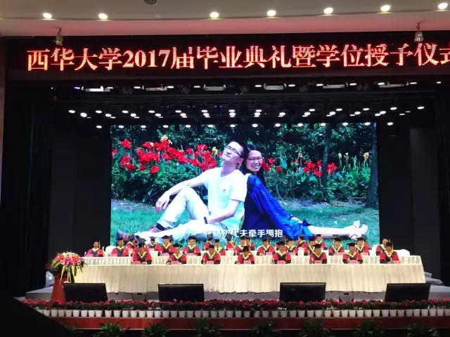 在西華大學(xué)2017屆畢業(yè)典禮上,畢業(yè)生劉威作為優(yōu)秀畢業(yè)生代表上臺領(lǐng)獎,而頒獎嘉賓是他的師姐、已經(jīng)工作一年的女友李清。李清于2016年畢業(yè),這次她專門從新疆請假趕回來見證男友授位。劉威非常激動,他十分感謝學(xué)校溫暖的安排,更加感謝女友千里迢迢回校對自己的支持。