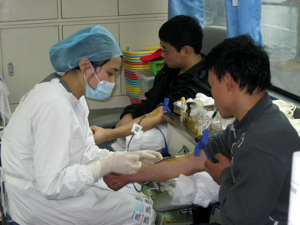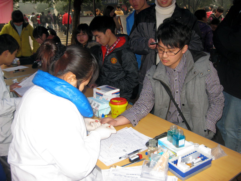 3月5日上午11點(diǎn),陰雨綿綿,春寒料峭。但從微博上得到義務(wù)獻(xiàn)血消息的同學(xué)們早早就來到了第二食堂門口,自覺在獻(xiàn)血車前排好隊(duì),踴躍地進(jìn)行無償獻(xiàn)血和捐獻(xiàn)造血干細(xì)胞。 填報個人資料及健康問卷、登記電腦資料、量血壓體檢、驗(yàn)血,同學(xué)們在一批志愿者的幫助下有條不紊地進(jìn)行著獻(xiàn)血前的準(zhǔn)備工作。如果檢查順利,就可以登上獻(xiàn)血車,獻(xiàn)血過程大約10分鐘,休息片刻后便可以拿到獻(xiàn)血證。因?yàn)樘崆皬奈⒉┥峡吹搅藷o償獻(xiàn)血的資料,不少同學(xué)都提前做好了準(zhǔn)備,晚上休息好,提前吃午飯,保持良好的精神狀態(tài)。有的學(xué)院以團(tuán)支部活動的形式,把同學(xué)們號召到獻(xiàn)血車前,自愿獻(xiàn)血;有的同學(xué)更是把同寢室的同學(xué)和好朋友都叫上,大家一起獻(xiàn)血,相互拍照留念。 正在獻(xiàn)血的何晶同學(xué)說:“在今天這個特殊的日子里獻(xiàn)血,我覺得特別有意義。我認(rèn)為參加獻(xiàn)血活動不僅有益于個人健康,同時也是對社會出一份力、盡一份責(zé),你幫助了別人,也許某個時候你也會受到別人的幫助?!币晃淮笠坏耐瑢W(xué)在志愿者們的鼓勵下,勇敢地走上了獻(xiàn)血車,當(dāng)他拿著日期為2012年3月5日的獻(xiàn)血證時,他感到特別的自豪。另一位同學(xué)則因?yàn)楂I(xiàn)血間隔不足半年,被志愿者們婉拒了獻(xiàn)血的要求。他表示很遺憾,希望下次獻(xiàn)血車進(jìn)校的時候能夠如愿。 今天的義務(wù)獻(xiàn)血在三食堂和二食堂門口同時進(jìn)行。截止下午發(fā)稿時,獻(xiàn)血活動仍在進(jìn)行中,近200人參加了獻(xiàn)血,獻(xiàn)血總量近60000cc。作為我校“學(xué)習(xí)雷鋒好榜樣,每人做一件好事”的三月主題活動之一,學(xué)校還將發(fā)動更多同學(xué)開展更多的學(xué)雷鋒活動,希望全校同學(xué)更加積極地參與進(jìn)來。 義務(wù)獻(xiàn)血 獻(xiàn)血前的檢查 踴躍報名獻(xiàn)血 |