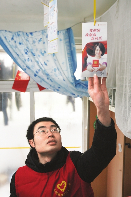 大學(xué)生莫曉航堅持五年無償獻血,被評為成都市優(yōu)秀無償獻血志愿者 “我一個人能獻多少血呢?關(guān)鍵是把大家都號召起來,一個人獻200毫升,匯集起來是一股很大的力量” 每隔幾個月,莫曉航就和志愿者隊員一同去“掃樓”,從寢室一樓敲門到七樓,鼓勵同學(xué)獻血。 西華大學(xué)熱能與動力工程系大三學(xué)生莫曉航,在學(xué)校里是出了名的“獻血志愿者”。為了最大限度實現(xiàn)自己的公益夢想,莫曉航不僅自己獻血,每隔幾個月還會從宿舍樓一樓敲到七樓,鼓動大家獻血。 地震缺血他發(fā)動全年級獻血 莫曉航從小就很關(guān)注醫(yī)學(xué),希望長大能成為一名治病救人的醫(yī)生。2008年1月11日,他迎來了18歲的生日。在操場上,他許下愿望:第二天放假就到血液中心去獻血,以讓自己肩負起成人的第一份責任。 “5·12”汶川大地震發(fā)生時,莫曉航還是都江堰外國語學(xué)校的一名學(xué)生,看到不少受傷者急需用血,他決定做一個“有能力幫助他人的人”,于是發(fā)動全年級同學(xué)無償獻血,僅他所在班級獻出的血量就累計達到6000毫升—7000毫升,相當于兩個成年人身體所擁有的血液量。 “我一個人能獻多少血呢?關(guān)鍵是把大家都號召起來,一個人獻200毫升,匯集起來是一股很大的力量?!蹦獣院秸f。 寢室文化成“獻血者之家” 高中畢業(yè),莫曉航考上了西華大學(xué)。2009年,他參加了由四川省紅十字協(xié)會組織的急救培訓(xùn)、加入到成都市無償獻血宣傳服務(wù)隊。雖然一些知識平時并不常用,但至少擁有這種能力去實施幫助,不會留下心有余而力不足的遺憾。 在校園里,莫曉航活躍在西華獻血分隊與青年志愿者聯(lián)合會團隊里,同時擔任分隊急救培訓(xùn)講師,培訓(xùn)更多的志愿者。在寢室文化大賽中,他和室友布置了“血液”主題寢室,墻上貼著“獻血者之家”,屋頂掛著各種宣傳冊。 每隔幾個月,莫曉航就和志愿者隊員一同去“掃樓”,從寢室一樓敲門到七樓,鼓勵同學(xué)獻血,一層樓就有30多間寢室,一晚上下來手背都敲得通紅,但每次招募到幾十個獻血者,他異常高興。 愿捐骨髓配對失敗成為遺憾 不到三年的時間,莫曉航去了血液中心20余次,與抽血護士混成了熟臉孔。2009-2010年度,他獲得成都市優(yōu)秀無償獻血志愿者稱號。 他報名加入中華骨髓庫志愿者,與同學(xué)一行捐獻出血小板。他說:“血小板對于白血病這類嚴重的血液病患者來講,意味著生命的維持,在沒有進行骨髓移植之前,非常珍貴?!币话銇碚f,人體正常的血小板有8萬單位,必須要大于15萬單位才能進行血小板捐獻,曉航的血小板值達17萬單位,他主動獻了5次血小板,1次全血。 去年,一位陌生人在骨髓庫志愿者QQ群里找到他,希望他能夠進行骨髓移植配對鑒定,挽救一位重慶白血病患者。莫曉航答應(yīng)了,在華西醫(yī)院完成了體檢,“可惜,當時檢查出我的身體狀況還不算達標,病人也不能等到我調(diào)節(jié)好后再手術(shù),成為遺憾?!?br /> 做“先知先覺”去改變后知后覺 莫曉航說:要做公益,光靠個人的力量是不行的,必須尋找一個有力的組織。如今,他擔任“四川大學(xué)生公益論壇(SCUPF)”秘書長,不僅組織獻血,還開展義賣、關(guān)注災(zāi)區(qū)貧困大學(xué)生,招募到數(shù)百名四川各大高校的志愿者開展公益支教等各種活動。 莫曉航說,他最大的愛好“就是公益”。在他看來,在這個時代,雷鋒精神可以利用公益網(wǎng)絡(luò)、利用更先進的技術(shù)去宣傳、去落實?!澳阏J為什么是現(xiàn)代雷鋒精神?”莫曉航說:“很簡單,就是愿意去做公益,同時愿意去影響身邊的人?!爆F(xiàn)在,只要他在論壇的群里發(fā)送一條消息,來自全省各高校的志愿者就能為了獻血等公益活動坐到一起,商議如何去幫助他人。 “我最喜歡孫中山先生的那句話,‘先知先覺,后知后覺,不知不覺’,我希望我能成為無償獻血隊伍中先知先覺的一員,去感染后知后覺、改變不知不覺。”莫曉航說。(雷雨田 華西都市報 記者 肖笛 攝影 譚曦 實習(xí)生 董睿) 莫曉航的宿舍里掛著很多鼓勵獻血的宣傳卡片 相關(guān)鏈接如下: 《華西都市報》:鼓動獻血 他一晚敲200多間寢室 http://www.wccdaily.com.cn/epaper/hxdsb/html/2012-03/07/content_427496.htm 《鳳凰網(wǎng)》:鼓動獻血 他一晚敲200多間寢室 http://city.ifeng.com/cskx/20120307/225129.shtml 《四川在線》:鼓動獻血 他一晚敲200多間寢室 http://sichuan.scol.com.cn/cddt/content/2012-03/07/content_3473067.htm?node=965