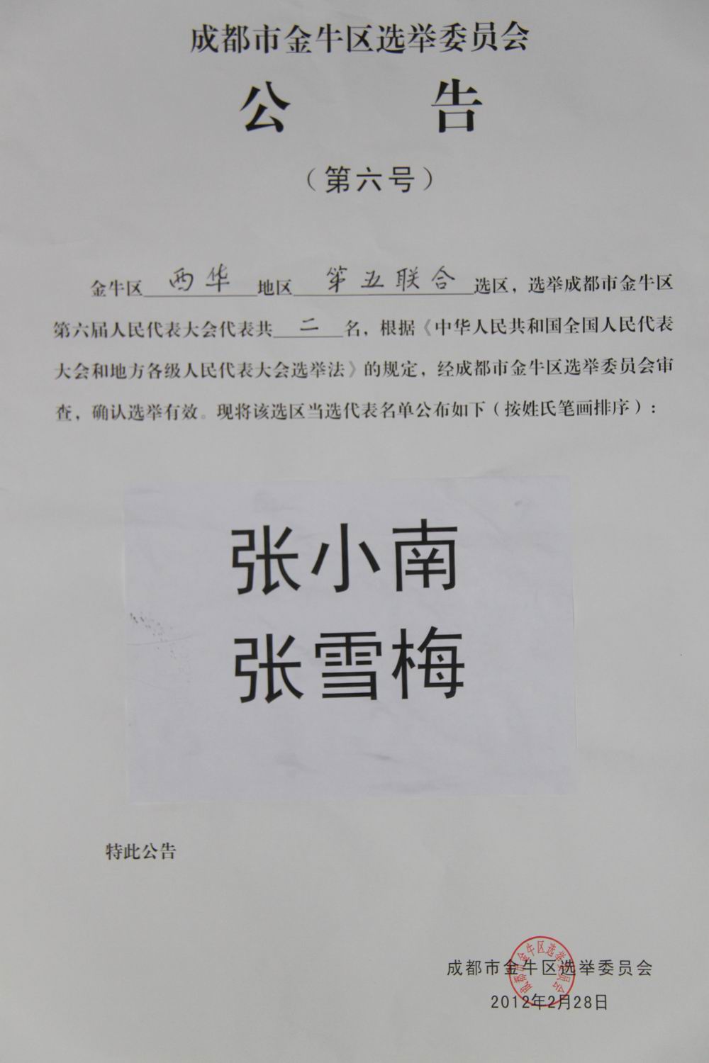 成都市金牛區(qū)選舉委員會公告選舉結(jié)果