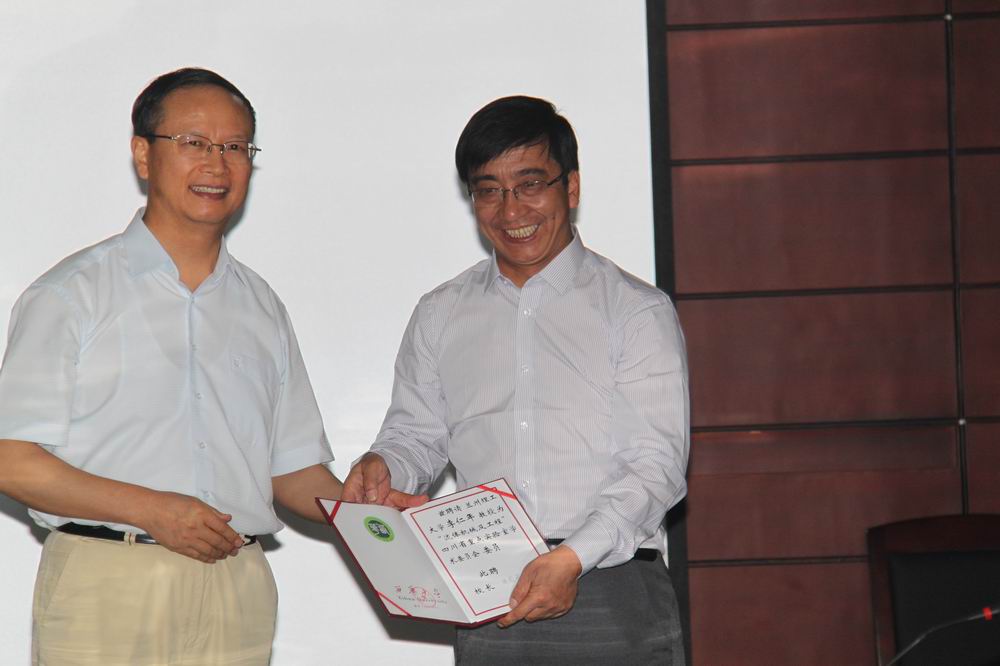 四川省科技廳副廳級巡視員鄭超英為“流體機(jī)械及工程”四川省重點(diǎn)實驗室主任劉小兵教授頒發(fā)聘書