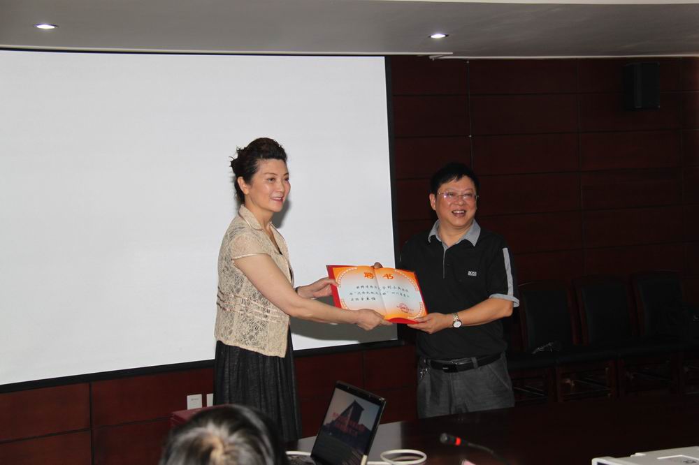 ?四川省科技廳副廳級巡視員鄭超英(左)為學(xué)術(shù)委員會主任許唯臨教授頒發(fā)聘書