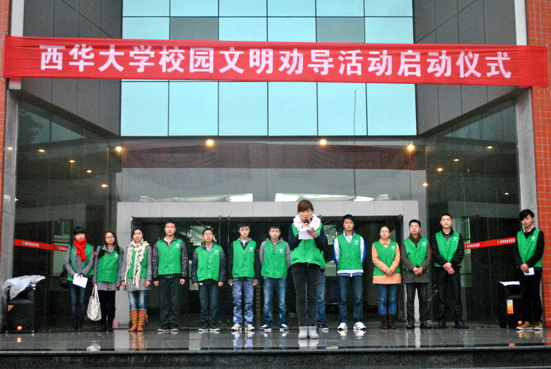 今年是雷鋒同志逝世50周年,為了弘揚(yáng)社會主義核心價值觀,不斷提升廣大學(xué)生道德素質(zhì)和校園文明程度,結(jié)合我校學(xué)雷鋒活動總體安排,3月4日上午,由校學(xué)生會發(fā)起的校園文明勸導(dǎo)活動在明德廣場正式啟動。 上午8:00,冒著蒙蒙細(xì)雨,身著“文明校園 從我做起”綠色服裝的校學(xué)生會和各學(xué)院學(xué)生會的文明勸導(dǎo)隊隊員齊聚明德廣場,主持人簡單介紹了本次活動的意義和安排,校學(xué)生會主席劉嗣立同學(xué)宣讀了“文明校園,從我做起”倡議書。之后,校園文明勸導(dǎo)活動正式在全校鋪開。 按照劃分好的責(zé)任片區(qū),各學(xué)院學(xué)生會組織主要學(xué)生干部組成校園文明勸導(dǎo)服務(wù)隊,深入到校園各個角落開始了牛皮癬的清理、草坪中垃圾的拾撿、對校園不文明行為的勸導(dǎo)等活動。 據(jù)悉,此次活動是校學(xué)生會開展學(xué)生干部向雷鋒學(xué)習(xí)、帶頭創(chuàng)先爭優(yōu)、為團(tuán)旗添光彩的系列活動之一,目的是在校內(nèi)形成人人愛護(hù)校園,爭做活雷鋒的校園文化氛圍。即日起,校園文明的勸導(dǎo)活動將在校園形成常態(tài)化,各學(xué)院將組織學(xué)生干部和志愿者長期在校園內(nèi)按劃定的區(qū)域,定期或不定期在校園各區(qū)域開展文明勸導(dǎo)活動。同時,校學(xué)生會希望全校同學(xué)都積極參與到文明校園的建設(shè)中,為文明西華的創(chuàng)建作出貢獻(xiàn)。 啟動儀式? 清理牛皮癬 拾撿垃圾附:“文明校園,從我做起”倡議書