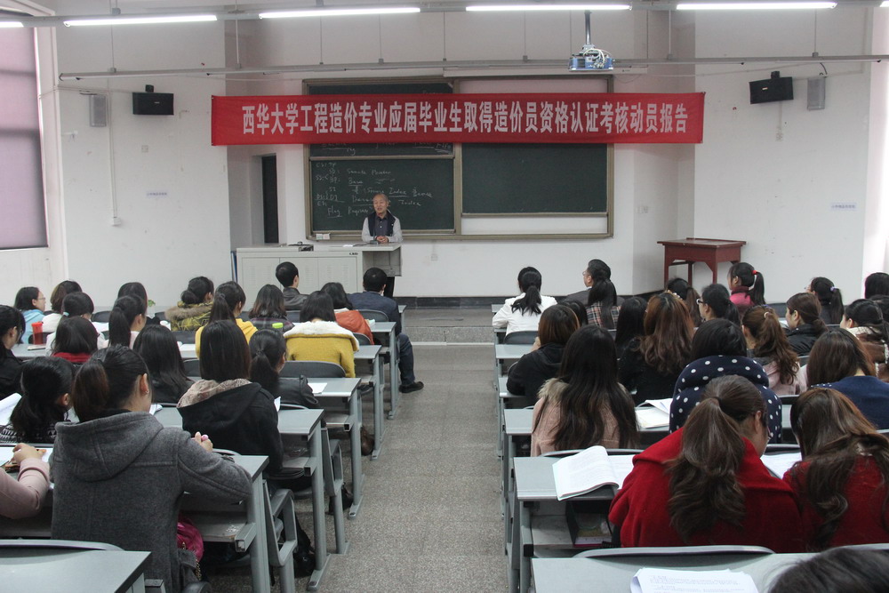3月20日,西華大學工程造價專業本科應屆畢業生取得《全國建設工程造價員資格證書》認證考核工作在學校正式舉行。由來自我省建設行政主管部門、大型國有施工企業、造價咨詢公司等工程造價管理領域的17位專家組成的認證考核專家組來到我校,對我校2008級工程造價專業應屆畢業生進行了造價員資格認證考核。 經過聽取匯報、查看資料、交流座談、對學生進行面試考核,認證考核專家一致認為:西華大學對工程造價專業的辦學和學科建設高度重視,專業定位明確,專業特色較突出,培養的學生能適應社會需求。本次認證考核工作,是行業主管部門和用人單位對我校辦學水平的一次肯定,它將有利于提高我校相關專業畢業生的就業競爭力,進一步推進學校的招生就業工作。 上午9:00,認證考核工作匯報會在6D-211舉行。中國建設工程造價管理協會副理事長、四川省造價工程師協會會長、此次工程造價認證考核專家組組長謝洪學(教授級高級工程師)等17位專家,我校副校長何建平,教務處副處長蔣珍菊,建筑與土木工程學院領導、建筑經濟與管理系教師參加了匯報會。建筑與土木工程學院院長劉保縣主持會議。 會上,何建平副校長代表學校對認證專家組表示熱烈歡迎。他指出,學校對本次認證考核工作十分重視,并將為工程造價專業的發展加大教學設施等方面的投入。 建筑與土木工程學院工程造價專業負責人陶學明教授向與會專家介紹了學校和學院的基本情況,并向各位專家匯報了工程造價專業的辦學情況。 匯報會后,認證考核專家組視察了該專業的教學條件,查閱了該專業教學資料文件、教師主編參編的各類教材、與造價專業有關的科研成果、歷屆學生的實習設計作業,然后分為8個小組對申請參加造價員資格證書認證并經學院初審合格的160名學生進行了面試考核。在面試考核中,我校參加造價員資格認證的同學都表現得非常優秀,受到專家們的一致稱贊。 面試結束后,專家組經過討論形成認證考核結論,并向學校進行了意見反饋。通過認證考核,159名同學符合《高等學校工程造價專業本科應屆畢業生取得造價員資格基本要求(試點)》的規定,基本達到全國建設工程造價員任職資格條件。 據悉,按照有關規定,《全國建設工程造價員資格證書》必須是大學生獲得畢業證書并參加工作后,才具有報名資格并經考試合格后取得。而造價員資格證書認證,是由建設行政管理部門組織認證專家組對相關高校及其工程造價專業本科應屆畢業生進行認證考核,對通過認證的學校的工程造價專業本科應屆畢業生,直接頒發《全國建設工程造價員資格證書》,學生畢業將獲得“雙證”資格。這是為進一步提高高等院校工程造價專業的辦學水平,貫徹落實國務院關于加強普通高等學校畢業生就業工作的精神,滿足社會對工程造價專業人才需求的一個重要舉措。2011年11月,全國建設工程造價員歸口管理部門——中國建設工程造價管理協會,決定在部分高校進行造價員資格證書認證試點工作。我校被首批確定為造價員資格證書認證試點工作的全國3所高校之一。 接到試點通知后,學校主管領導多次強調要搞好這項工作,建筑與土木工程學院黨政領導高度重視,建筑經濟與管理系全體教師全力參加,2008級工程造價專業應屆畢業生積極報名,認真準備,使得這次認證考核工作成功舉行。