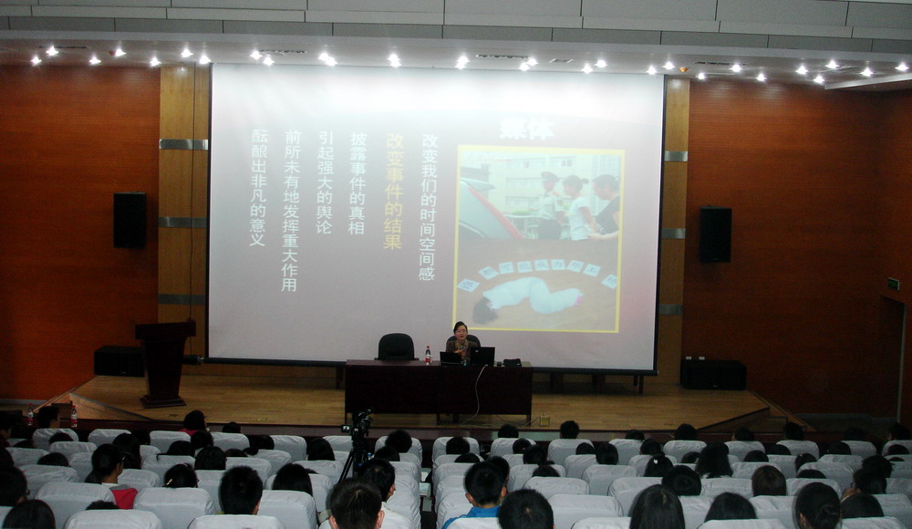 秋風(fēng)送爽,丹桂飄香,10月14日下午,應(yīng)人文學(xué)院“人文新視野”學(xué)術(shù)講壇的邀請(qǐng),四川大學(xué)文學(xué)與新聞學(xué)院博士生導(dǎo)師蔣曉麗教授來到風(fēng)景優(yōu)美的西華大學(xué)新校區(qū),在新圖書館二樓學(xué)術(shù)報(bào)告廳,為我校師生作了一場(chǎng)題為“媒介改變世界”的精彩講座。人文學(xué)院院長謝應(yīng)光教授主持講座,副院長潘殊閑及人文學(xué)院200余名師生聆聽了講座。 蔣曉麗教授首先介紹了媒介對(duì)現(xiàn)實(shí)世界的影響。她從當(dāng)前的媒介改變了人們的時(shí)空觀、改變了事件的結(jié)果、披露了事件的真相、引起了強(qiáng)大的輿論、發(fā)揮了前所未有的重大作用、醞釀出了非凡的意義等六個(gè)方面,結(jié)合近年來的熱點(diǎn)事件,生動(dòng)闡述了媒介如何影響世界,改變我們的生活。蔣教授特別介紹了新媒體是如何改變世界的。例如維基網(wǎng)站,借助網(wǎng)民自己上傳的資料,建立起一個(gè)龐大的數(shù)據(jù)庫全球共享;又如Google地圖,結(jié)合天上的衛(wèi)星和地上的攝像頭,能實(shí)時(shí)展現(xiàn)世界上的各個(gè)角落;再如人立方關(guān)系搜索,能從超過十億的中文網(wǎng)頁中,自動(dòng)抽取出人名、地名、機(jī)構(gòu)名以及中文短語,并且通過算法自動(dòng)的計(jì)算出它們之間存在關(guān)系的可能性;同時(shí),人立方關(guān)系搜索還索引了支持它們之間關(guān)系的網(wǎng)頁文字。 在介紹新媒介的同時(shí),蔣曉麗教授提醒同學(xué)們,新媒體是一把雙刃劍,它在給我們帶來便利的同時(shí)也帶來很多問題。我們獲取知識(shí)和信息更加便捷,但我們不能迷失在信息的海洋里,要學(xué)會(huì)自己獨(dú)立思考。 蔣曉麗教授的講座使得同學(xué)們大開眼界,聽得分外認(rèn)真。講座結(jié)束,同學(xué)們報(bào)以熱烈的掌聲。  |