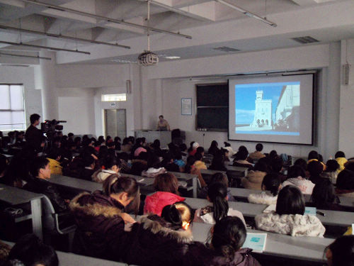 ??? 楊教授就歐洲博大精深的設計文化、歐盟與中國設計聯系與區別、歐洲各國的商場和包裝以及意大利、德國、法國的著名建筑作了詳細的介紹。在講解歐盟與中國的區別中,楊教授具體分析了在設計思維和設計理念上的不同。最后,楊教授跟同學們一起分享了法國名設計師Philippe Starck的設計作品。
