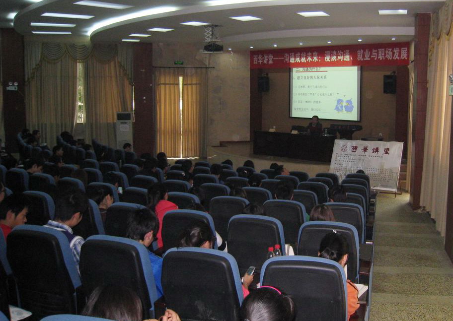 11月10日下午,西南財經大學公共管理學院副院長廖宏斌副教授應邀作客“西華講堂”, 在臨江苑報告廳為廣大師生作了一場主題為“溝通成就未來:漫談溝通、就業與職場發展”的講座。本次西華講堂由校團委主辦,經濟與貿易學院團委承辦。經濟與貿易學院黨委副書記、副院長毛正強主持了此次講座。 講座現場氣氛熱烈,座無虛席。廖宏斌副教授引經據典,解析精到。他首先用幾個生動有趣的故事強調了溝通的重要性,其次圍繞“什么是溝通、為什么要溝通、怎樣去溝通”由淺入深地闡述,用幽默風趣的語言解讀了管理溝通學科中的三大定律:知己知彼、換位思考與雙贏策略。“良好的溝通交際能力不僅能推進個人事業的發展,還能實現夢想,改變世界。”他從就業與職場發展的角度結合現實中的事例為同學們如何提高溝通交際能力指明了方向,在場的師生紛紛表示深受啟發。 隨后,廖宏斌副教授與到場師生圍繞主題進行了進一步交流,并向大家推薦了管理溝通領域的經典書籍,近兩個小時的講座在熱烈的討論中圓滿結束。  |