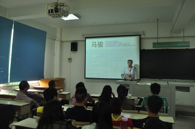 ????? 9月10日上午10:00,政治學(xué)院響應(yīng)西華大學(xué)第二屆校友會活動的號召,有幸邀請到原成都農(nóng)機學(xué)院80級校友,現(xiàn)為達州校友會副會長,四川瑞康藥業(yè)總經(jīng)理的馬駿以及現(xiàn)任達縣副縣長的另外一位95級校友蔣偉林作為訪談嘉賓參與本次談活動。參加本次活動的有政治學(xué)院團委書記李旭老師和全體學(xué)生干部。 ????? 活動中,校友馬駿絲毫沒有商業(yè)大佬的架勢,他熱情洋溢地與同學(xué)們互動,風趣幽默地講述了自己青蔥的大學(xué)生活,詼諧的語言和滑稽的動作逗得同學(xué)們哈哈大笑。其后,他又深入淺出地講到自己下海經(jīng)商的艱辛經(jīng)歷。困難也好,逆境也罷,他都希望同學(xué)們能夠堅持自己的夢想并為之奮斗。第二位與同學(xué)們分享自己學(xué)習和職業(yè)生涯的是原四川工業(yè)學(xué)院95級校友蔣偉林,他首先指出能力大小并不重要,關(guān)鍵是品質(zhì)不能敗壞。他告誡同學(xué)們首先得學(xué)會做人,方能成事。最后,他以馬英九的家訓(xùn)“黃金非寶書為寶,萬事皆空善不空”結(jié)束了談話。 ????? 校友們的經(jīng)驗分享加強了在校學(xué)生和校友們的聯(lián)系,能很好地激發(fā)同學(xué)們的創(chuàng)業(yè)意識以及對人生道路規(guī)劃的思考。訪談在同學(xué)們熱烈掌聲中圓滿結(jié)束。  報告會現(xiàn)場(一)