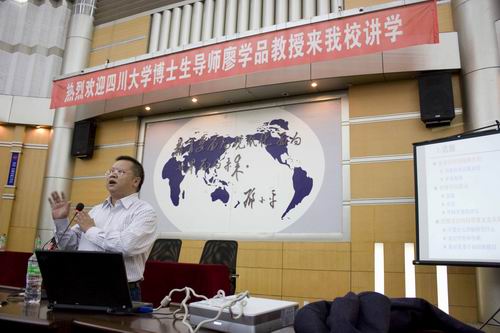 ??? 10月22日,四川大學(xué)博士生導(dǎo)師廖學(xué)品教授應(yīng)邀在四教報告廳就科學(xué)研究方法及項目申請作了一堂精彩的報告。能源與環(huán)境學(xué)院領(lǐng)導(dǎo)和部分師生聆聽了報告。?? ?廖學(xué)品教授從事教學(xué)研究20余年,主持參加國家相關(guān)研究項目16項,發(fā)表論文120余篇,擁有5項授權(quán)科技發(fā)明證書。此次講座,他以科學(xué)的研究方法為主題,圍繞項目的申報及論文的寫作兩方面作了深入講解。在項目申報方面,廖教授強調(diào)關(guān)注近期相關(guān)學(xué)術(shù)文獻的重要性,他還告誡同學(xué)們要積極參加學(xué)術(shù)會議以及科學(xué)方面的論壇,要力爭把握申報項目發(fā)展的意義,這樣才能更好了解該項目的社會存在價值。廖教授還舉出實例詳細解說了申請書的寫作方法以及與寫作相關(guān)的注意事項。