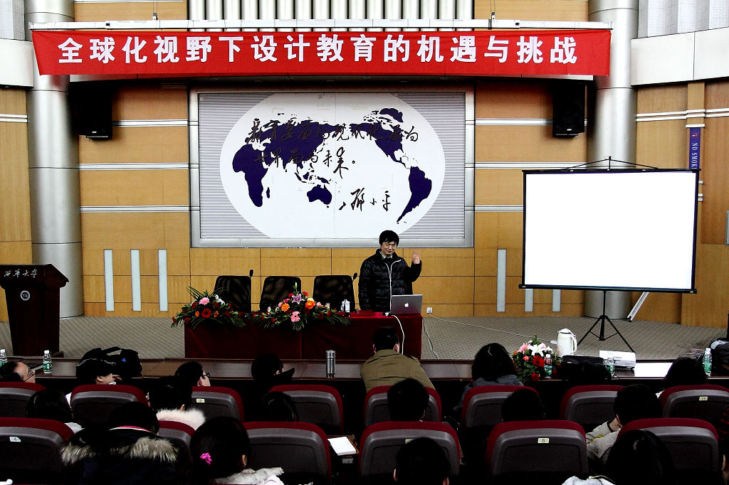 12月27日,湖南大學設計藝術學院院長何人可教授應邀蒞臨我校,為藝術學院工業設計系和藝術設計系的師生獻上了一場以“全球化視野下設計教育的機遇與挑戰”為主題的講座,并受聘為藝術學院客座教授。 何人可教授是教育部高等學校工業設計專業教學指導分委員會主任委員、中國工業設計協會副理事長、中國機械工業教育協會工業設計學科教學委員會主任委員、湖南省設計藝術家協會主席,在中國工業設計界具有非常高的聲譽和影響力,他的來訪為藝術學院同學們提高設計專業素養起到了積極的促進作用。? 講座中,何教授分析了基于全球背景的工業設計發展及其教育趨勢,提出了服務模式、商業模式、交互界面、產品平臺和一體化設計的設計體系,向師生們展示了湖南文化創意產品開發工作坊等湖南大學設計藝術學院最新的設計、研究和教學成果。何教授還與藝術學院工業設計系的教師們進行了交流,傳達最前沿的教學理念和寶貴的教學經驗。 ?12月28日,設計系教師陪同何教授前往四川長虹,參觀了四川長虹的創新設計中心,與長虹創新設計中心工業設計部部長蔡年貴、創新設計中心主任葉根軍就設計趨勢、設計教育等話題進行了交流。