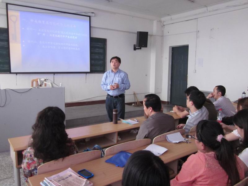 4月27日下午,應我校藝術學院之邀,首都師范大學音樂學院副院長、音樂教育學及音樂心理學博士生導師周世斌教授在我校進行了題為《國際對接——中美音樂教育現狀的一些觀察與思考》的學術講座。 藝術學院常務副院長肖珣,副院長屈立豐,及音樂系師生100多人聆聽了講座。 講座中,周世斌教授從“音樂教育價值觀”、“音樂教育能力觀”、“基礎教育音樂課程改革”、“音樂教育軟實力”,“多元智能教育”等幾個方面進行了講演及論述。作為中國少數音樂心理學博士導師之一,周教授較早地在音樂心理學、音樂教育學領域采用實驗研究的科學方法進行研究。他以5.12汶川地震后對北川中學幸存學生的音樂心理治療活動為例,向同學們講解了音樂心理治療的相關知識及在災區經歷的感人故事。 通過這次講座,廣大師生進一步了解了國際國內音樂教育的發展現狀,為我校藝術學院今后的音樂教學提供了良好的幫助。 周世斌教授正在講學