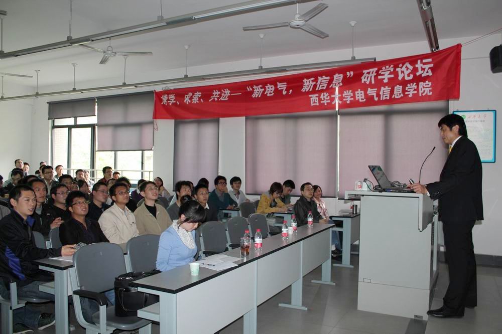 ????? 4月16日下午,臺灣國立勤益科技大學楊善國教授應邀來我校作了題為“Remote charging for cardiac pacemakers by using the Transcutaneous Optical Energy System”的學術報告,也開啟了電氣信息學院“新電氣新信息”研學論壇第二期的討論。 楊善國教授作報告 |