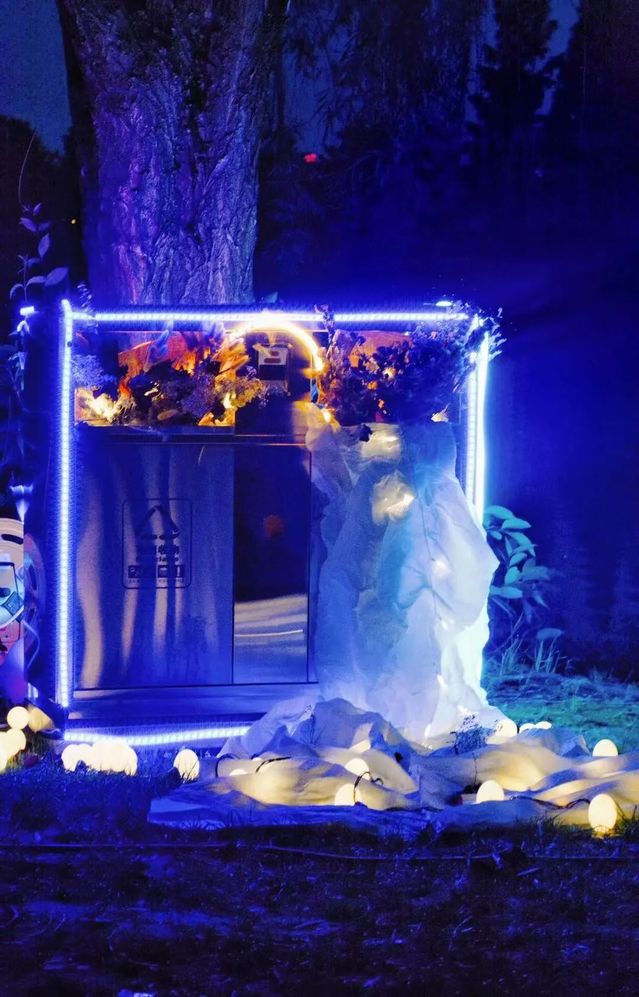 此次光影藝術節共展出2020級藝術與科技專業15組光影藝術裝置作品。作品以聲光電的結合為主帶給觀眾全新的沉浸式藝術體驗,分為“西華記憶”“光影獵奇”“時空探索”三個章節。在西華記憶板塊里,創作小組嘗試用固有的西華校園景觀,結合了“時鐘”“防疫”等時代元素,喚起同學們對國家時事、西華校園回憶的別樣體驗。在光影獵奇板塊中,創作者希望通過干冰、霓虹燈、投影設備等豐富的光影交互方式,讓大家感受到新材料和新媒介所帶來的奇妙體驗。而時空探索板塊,創作者利用冰塊、Led光等形象呈現出對時空,人性以及哲學的探索思考。作品風格多樣,為同學們課余生活增添了紛紛藝術樂趣。