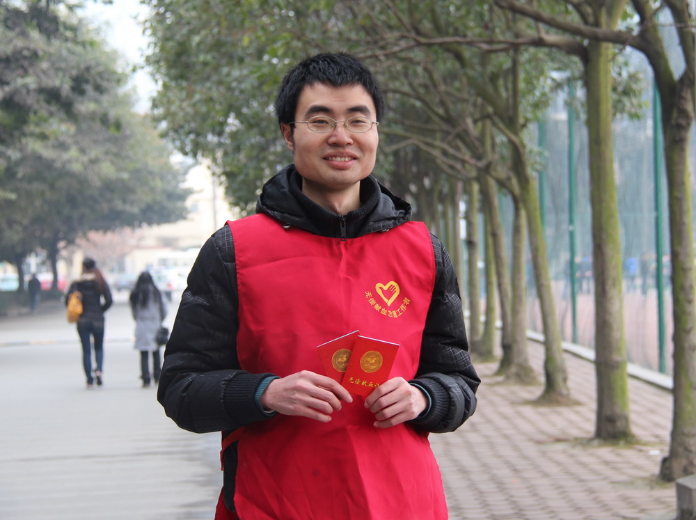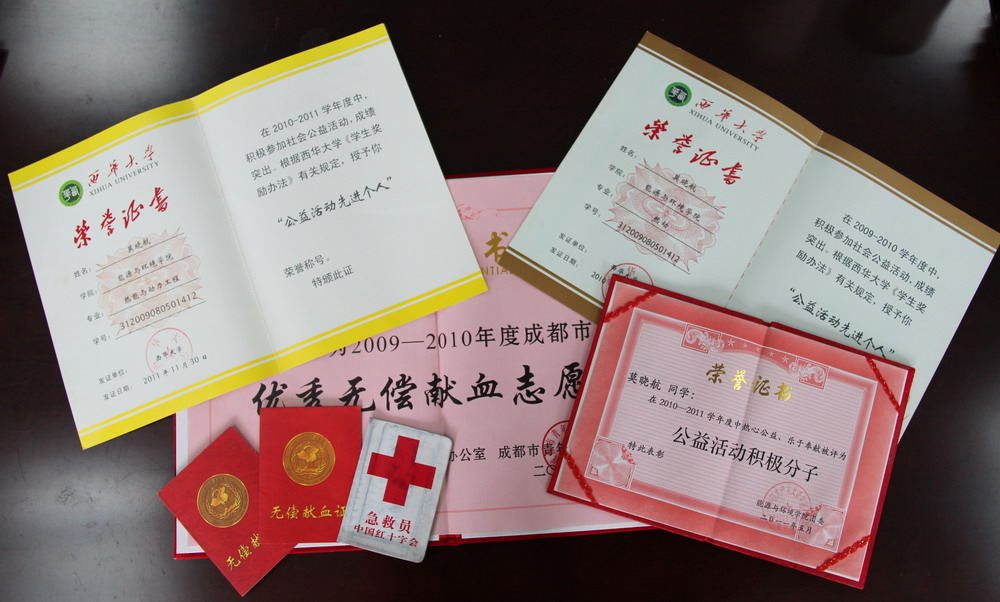 編前語(yǔ):今年是雷鋒同志逝世50周年紀(jì)念,為進(jìn)一步弘揚(yáng)新時(shí)期的雷鋒精神,倡導(dǎo)社會(huì)文明新風(fēng),引導(dǎo)廣大師生樂(lè)于助人、無(wú)私奉獻(xiàn),爭(zhēng)做新時(shí)代的活雷鋒,“西華大學(xué)新聞網(wǎng)”及《西華大學(xué)報(bào)》特開(kāi)設(shè)“尋找身邊的活雷鋒”欄目,請(qǐng)廣大師生積極推薦身邊的道德模范、優(yōu)秀志愿者以及助人為樂(lè)、見(jiàn)義勇為、扶貧助學(xué)、樂(lè)善好施等方面的“活雷鋒”,把他們的事跡材料或新聞線(xiàn)索發(fā)至xhunews@163.com,也可致電黨委宣傳部新聞中心(87720014)。凡報(bào)送的新聞線(xiàn)索被西華大學(xué)新聞網(wǎng)“西華要聞”欄目、《西華大學(xué)報(bào)》采用,或者被推薦至社會(huì)媒體采用者,黨委宣傳部將給予新聞線(xiàn)索獎(jiǎng)勵(lì)。 他從小就立志要助人為樂(lè),做一個(gè)對(duì)社會(huì)有貢獻(xiàn)的人;他從年滿(mǎn)18歲便一直堅(jiān)持無(wú)償獻(xiàn)血;他不僅自己獻(xiàn)血,還影響和帶動(dòng)身邊的人一起關(guān)注公益事業(yè);他關(guān)注生命,在助人救人的道路上從未停止過(guò)腳步,他用愛(ài)心筑建生命動(dòng)能站,用自己的行動(dòng)詮釋當(dāng)代大學(xué)生強(qiáng)烈的社會(huì)責(zé)任感與一代青年人的擔(dān)當(dāng)。他就是我校能源與環(huán)境學(xué)院熱能與動(dòng)力工程專(zhuān)業(yè)大三學(xué)生莫曉航。 “想要做一個(gè)有能力幫助他人的人” 莫曉航從小的理想就是當(dāng)一名醫(yī)生,因?yàn)獒t(yī)生可以救死扶傷。在他小小的心靈里,公益事業(yè)似乎早已種下了幼苗。莫曉航受母親的影響很大,有一次母親無(wú)意間表露出想獻(xiàn)血卻因身體不好而無(wú)法獻(xiàn)血的遺憾,讓他產(chǎn)生了獻(xiàn)血的想法。 2008年1月12日,這一天對(duì)莫曉航來(lái)說(shuō)意義非凡,剛滿(mǎn)十八歲不久的他勇敢地來(lái)到都江堰廣場(chǎng)的獻(xiàn)血車(chē)上,大聲說(shuō)道:“醫(yī)生,我要獻(xiàn)血!”獻(xiàn)血后,莫曉航激動(dòng)了好幾天。“一想到自己的血能幫助需要它的人,心里就有一種說(shuō)不出的激動(dòng)。”莫曉航的媽媽很支持他的獻(xiàn)血舉動(dòng),這讓他堅(jiān)定了要一直堅(jiān)持無(wú)償獻(xiàn)血的信念。 2008年5月12日,就讀于都江堰外國(guó)語(yǔ)實(shí)驗(yàn)學(xué)校的莫曉航親身經(jīng)歷了汶川大地震,地動(dòng)山搖的震撼給他帶來(lái)了巨大的觸動(dòng)。地震后,地處極重災(zāi)區(qū)的都江堰滿(mǎn)目瘡痍,莫曉航的許多同學(xué)及熟人都失去了親人。失親之痛無(wú)法用言語(yǔ)去安撫,唯一能做的就是當(dāng)一名志愿者,用實(shí)際行動(dòng)去為他們做點(diǎn)實(shí)事。于是,莫曉航聯(lián)合另外7名同學(xué)一起擔(dān)任抗震救災(zāi)志愿者,每天負(fù)責(zé)搬運(yùn)飲用水及物資、給進(jìn)災(zāi)區(qū)的外地車(chē)輛帶路、為受災(zāi)群眾發(fā)送報(bào)紙。莫曉航說(shuō):“我們做的事情都很雜很零碎,但是仍在努力地做,因?yàn)槲覀兏械轿覀兪潜恍枰哪且粋€(gè)。” 親身經(jīng)歷過(guò)生與死的考驗(yàn)后,莫曉航和同學(xué)們都對(duì)生命有了新的認(rèn)識(shí)和理解,對(duì)生命有了一種敬畏,也更加珍惜生命。在莫曉航的帶動(dòng)下,同學(xué)們陸續(xù)都開(kāi)始進(jìn)行無(wú)償獻(xiàn)血。高三那一年,他們一個(gè)班獻(xiàn)血量累計(jì)達(dá)到6000~7000毫升,相當(dāng)于兩個(gè)成年人身體所擁有的血液總量。 2009年8月,莫曉航參加了由四川省紅十字協(xié)會(huì)組織的急救培訓(xùn),雖然他不是醫(yī)學(xué)專(zhuān)業(yè),可能用到這些知識(shí)的時(shí)候不會(huì)很多,但是他希望當(dāng)遇到可以幫助他人的時(shí)候,他有這個(gè)能力去實(shí)施幫助,而不是留下“心有余而力不足”的遺憾。 “尋找一個(gè)有號(hào)召力的組織,而不是閉門(mén)造車(chē)” 2008年2月1日,莫曉航路過(guò)天府廣場(chǎng)時(shí),偶然看到中華骨髓庫(kù)在招募志愿者,他立即報(bào)名加入了他們的志愿者團(tuán)隊(duì)。同年8月,莫曉航還鼓動(dòng)5位高中同學(xué)一起去捐獻(xiàn)了血小板。血小板對(duì)于白血病這類(lèi)嚴(yán)重的血液病患者來(lái)講,意味著生命的維持,在沒(méi)有進(jìn)行骨髓移植之前,白血病患者正是通過(guò)各種血細(xì)胞的輸入來(lái)維持生命。莫曉航說(shuō):“人體正常的血小板有8萬(wàn)單位,必須要大于15萬(wàn)單位才能進(jìn)行血小板捐獻(xiàn),而莫曉航的血小板值達(dá)到了17萬(wàn)單位,所以在他的獻(xiàn)血經(jīng)歷中,他獻(xiàn)了5次血小板,1次全血。 生命的脆弱經(jīng)不起時(shí)間的等待,救助必須及時(shí)。怎樣才能給予最及時(shí)的救助必須要依托于一個(gè)具有號(hào)召力的組織,讓莫曉航意識(shí)到這個(gè)問(wèn)題是基于一次救助失敗的經(jīng)歷。 成為中華骨髓庫(kù)志愿者后,莫曉航非常留心志愿者QQ群里的相關(guān)信息。有一次,他看到群消息里有一位重慶白血病患者的求助,便立即聯(lián)系在重慶各大高校的同學(xué)幫忙,幾經(jīng)周折卻沒(méi)得到滿(mǎn)意的結(jié)果。從那時(shí)起,莫曉航開(kāi)始明白,要做公益,光靠一個(gè)人的力量是不行的,必須尋找一個(gè)有力的組織。就在這