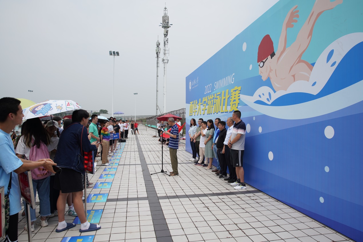 6月2日下午,由西華大學體育工作委員會主辦,體育學院、校工會承辦,黨委宣傳部、黨委學生工作部、團委、保衛處、后勤服務總公司、教育發展與科創服務中心、體育學院團委協辦的教職工游泳比賽暨學生游泳比賽在臨江苑游泳池舉行。開幕式由體育學院院長王永生主持。體育學院黨委書記張彥致辭,希望全體運動員奮勇拼搏,賽出競技水平,賽出道德風尚,賽出個性風采,賽出團結友誼。隨后,運動員代表和裁判員代表分別宣誓,全體奏唱國歌。在熱烈的氣氛中,體育工作委員會主任肖旭宣布比賽正式開始。