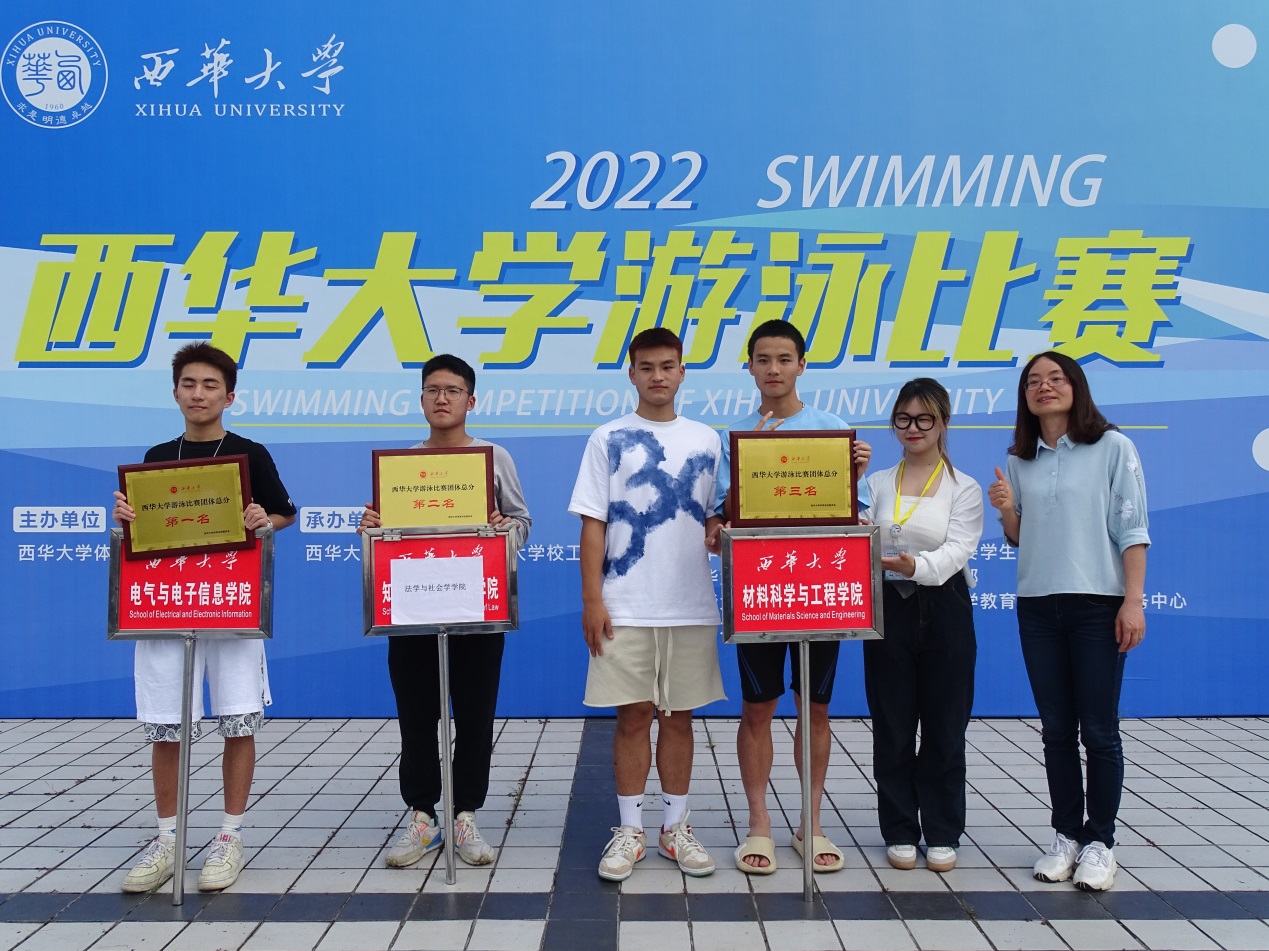 游泳比賽含50米蛙泳、50米自由泳、100米蛙泳、100米自由泳、50米蝶泳、8×50米男女自由泳接力等項目。奔騰的水花、矯健的水中身姿,展現了游泳運動員們激烈的角逐和拼搏的態度,最終,電氣與電子信息學院以其昂揚的斗志和不俗的游泳技能,以總分88的成績榮獲學生組第一名;法學與社會學學院榮獲學生組第二名;材料科學與工程學院榮獲學生組第三名。汽車與交通學院、文學與新聞傳播學院、管理學院、大健康管理學院、經濟學院分別獲得第四名到第八名。
