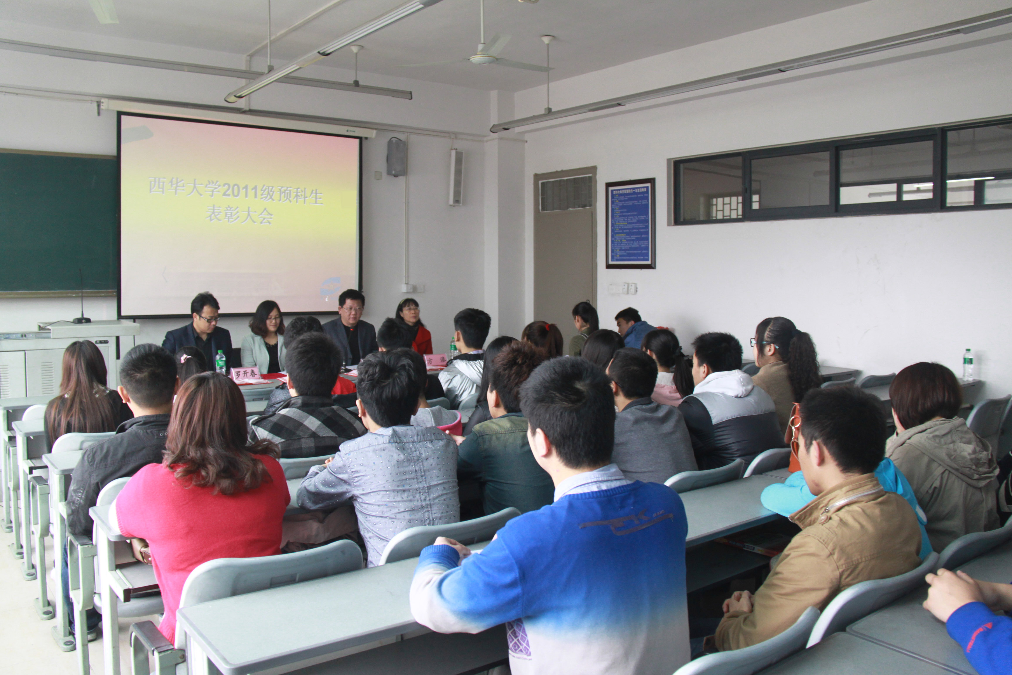 ???? ?3月20日上午,2011級邊防軍人子女預科生表彰大會在5B-312舉行。后備軍官學院黨委書記兼院長趙琪、教務處副處長蔣珍菊、預科班班主任方臻參加了表彰大會。會議由后備軍官學院黨委副書記兼副院長羅開春主持。 ????? 會上,趙琪談到,開辦邊防軍人子女預科班,目的是讓同學們能與地方高校的學生接受一樣的教育,將來更好地面臨競爭,為國家和社會多作貢獻。他要求同學們嚴格要求自己,端正學習態度,注重學習方法,發揚“知難而進,自強不息”的西華精神,奮發努力,為下一步升入本科后的學習打好基礎。 ????? 大會表彰了第一學期學習成績進步明顯的先進個人、優秀共青團員和學生干部,以及7名成績優秀的獎學金獲得者。通過一個學期的努力學習,程雪婷獲得一等獎學金,俞雅嵐、王成杰獲得二等獎學金,徐婷、郭佳莉、劉雁凌、段然獲得三等獎學金。程雪婷同學代表獲獎學生上臺發言,她對學校領導和老師的關心與幫助表示深深的謝意,決心繼續努力,把握來之不易的機會,以優異的成績回報父母,回報母校。 相關鏈接: ???? 邊防軍人子女預科班經國家教育部、解放軍總政治部批準開辦,是國家和軍隊落實《國防法》、《現役軍官法》的客觀要求,是貫徹落實科學發展觀、踐行“以人為本”思想的重要舉措,也是積極回應廣大官兵重大關切的深入實踐。全國共有5所高等院校開辦了邊防軍人子女預科班,我校是其中之一。 表彰大會現場 |