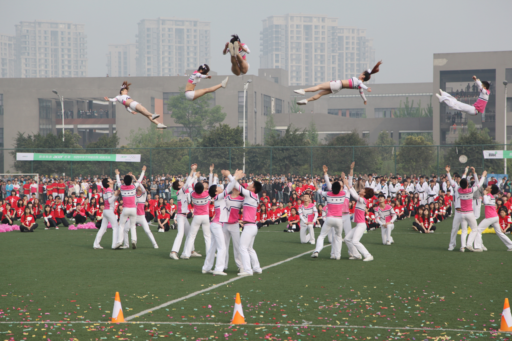 校黨委書記張小南宣布運(yùn)動(dòng)會(huì)開幕 國家體育總局體操運(yùn)動(dòng)管理中心中國啦啦操分會(huì)副主席邱建鋼(右一)授牌 副校長王政書主持開幕式 整齊的方陣入場(chǎng) 入場(chǎng)表演 大型團(tuán)體操表演 啦啦操表演 起跑 |