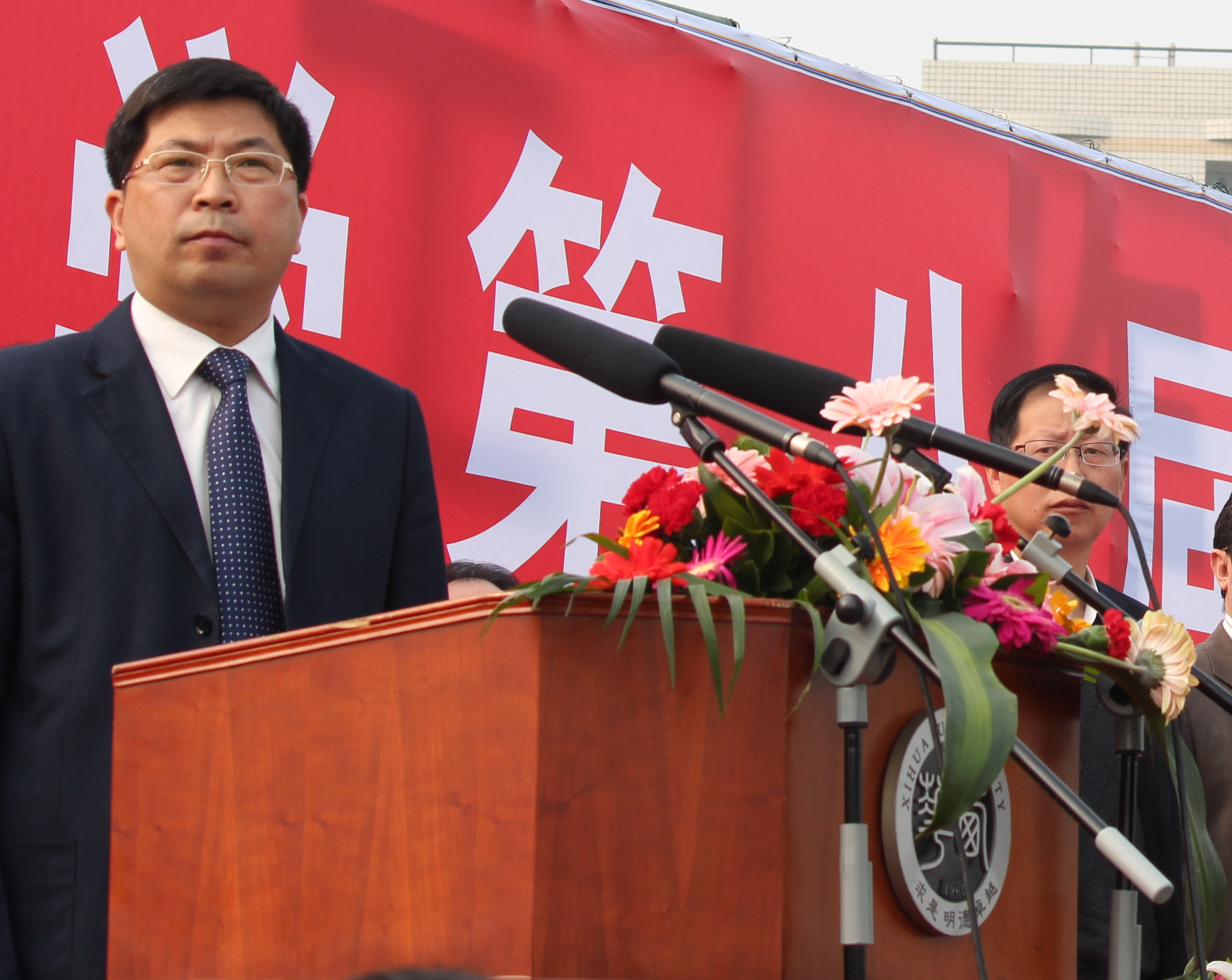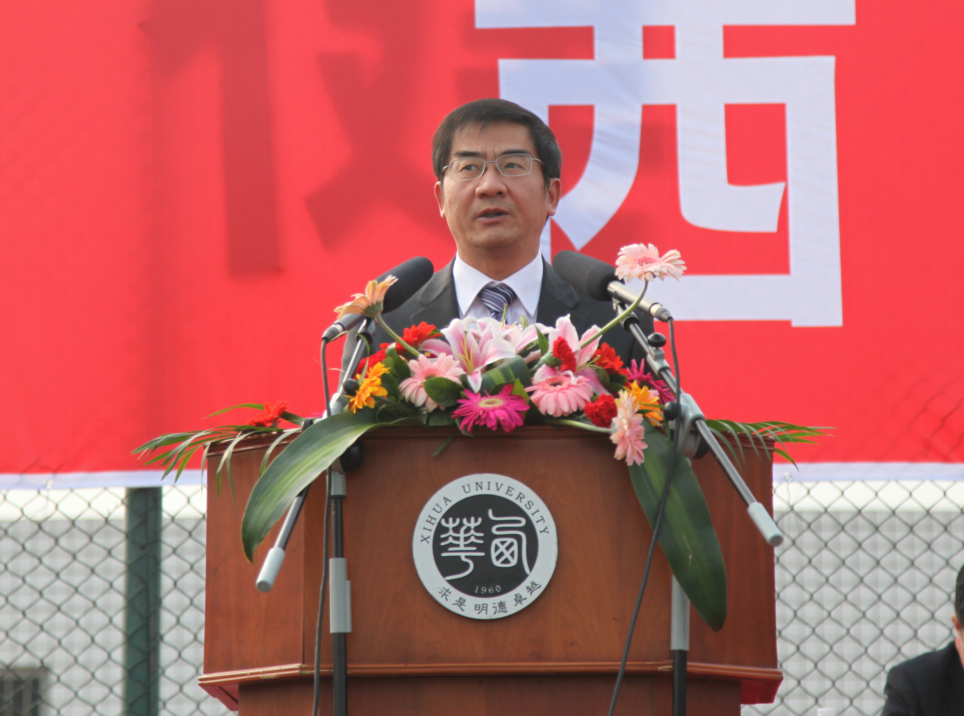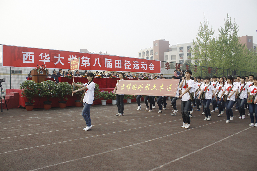 ???? 4月11日上午8:30,西華大學(xué)第八屆田徑運(yùn)動(dòng)會(huì)開幕式在臨江苑足球場(chǎng)盛大開幕。蒞臨開幕式的嘉賓及領(lǐng)導(dǎo)有:國家體育總局體操運(yùn)動(dòng)管理中心中國啦啦操分會(huì)副主席、全國啦啦操推廣委員會(huì)執(zhí)行副主任、啦啦操國際級(jí)裁判邱建鋼先生,校黨委書記張小南,校黨委副書記王小林,副校長蔡漢軍、何建平、錢進(jìn)、胡丹、王政書及本屆運(yùn)動(dòng)會(huì)組委會(huì)全體成員。副校長王政書主持開幕式。 ??????? ?????????????????????各代表方陣閃亮登場(chǎng)???? ? 迸發(fā)青春活力 ???????? ???? 當(dāng)王政書副校長宣布“西華大學(xué)第八屆田徑運(yùn)動(dòng)會(huì)正式開始,請(qǐng)運(yùn)動(dòng)員入場(chǎng)”之后,率先入場(chǎng)的是由20名體育學(xué)院同學(xué)組成的裁判員代表隊(duì),他們邁著堅(jiān)定的步伐走向會(huì)場(chǎng)。隨后,22個(gè)學(xué)院的代表方陣閃亮登場(chǎng),創(chuàng)意不斷的方陣匯演吸引了在場(chǎng)師生的眼球。 ???? 應(yīng)用技術(shù)學(xué)院以“魚”形的隊(duì)型首先吸引了大家的目光;電氣信息學(xué)院由51單片機(jī)主控芯片控制的8盞燈在院牌前循環(huán)閃亮,與方隊(duì)中所有隊(duì)員肩上的閃燈相搭配,并以“電似游龍,氣勢(shì)恢宏”的口號(hào)相呼應(yīng);藝術(shù)學(xué)院的同學(xué)們以水袖、長裙上演了一段美麗的舞蹈,引來了同學(xué)們的陣陣歡呼;后備軍官學(xué)院以整齊的步伐、嚴(yán)整的陣容彰顯著他們的風(fēng)采;數(shù)學(xué)與計(jì)算機(jī)學(xué)院方隊(duì)的每位成員手持一塊代表鍵盤的紙板,通過身體姿勢(shì)的變換,實(shí)現(xiàn)鍵盤的敲擊與界面調(diào)整的模擬效果,彰顯學(xué)院特色;能源與環(huán)境學(xué)院的同學(xué)們舉著一個(gè)“紫坪壩水電站”的模型入場(chǎng)……各代表方陣用新穎的創(chuàng)意和整齊劃一的步伐,展現(xiàn)了西華學(xué)子充滿自信、洋溢健康活力的青春風(fēng)采。 ???????? ???????????????? 國家體育總局來校授牌?? 我校成為“全國啦啦操推廣示范學(xué)校” ???????? ???? 開幕式上,副校長、校體委主任何建平總結(jié)了近年來我校體育工作取得的優(yōu)異成績,并指出,學(xué)校第八屆田徑運(yùn)動(dòng)會(huì)的隆重舉行,是對(duì)我校體育工作的一次檢閱,也是對(duì)運(yùn)動(dòng)員、教練員身體素質(zhì)、競技才能、心理承受能力等綜合素質(zhì)的考驗(yàn),同時(shí)也是各參賽單位競爭意識(shí)、團(tuán)隊(duì)意識(shí)、頑強(qiáng)拼搏精神的綜合體現(xiàn)。” ???? 接下來,國家體育總局體操運(yùn)動(dòng)管理中心中國啦啦操分會(huì)副主席邱建鋼先生代表國家體育總局體操運(yùn)動(dòng)管理中心、全國啦啦操推廣委員會(huì),正式授牌我校成為“全國啦啦操推廣示范學(xué)校”。當(dāng)何建平副校長代表學(xué)校接牌后,全場(chǎng)響起了熱烈的掌聲。 ???? ????????????????? “明星”陣容驚艷會(huì)場(chǎng)????? ?上演魅力表演 ?????? ???? 9:10,當(dāng)校黨委書記張小南宣布“第八屆田徑運(yùn)動(dòng)會(huì)現(xiàn)在開幕!”后,上千人的團(tuán)體操表演正式開始。音樂響起,1200多名女生穿著統(tǒng)一的服裝,拿著五彩的花球,用熱情、活潑、陽光、朝氣顯示出她們的生機(jī)與活力,隨著音樂明朗的節(jié)奏,這1200多名啦啦操表演者整齊一致的變換著各種隊(duì)形,獲得了運(yùn)動(dòng)場(chǎng)上的師生們一次又一次熱烈的掌聲。 ???? 當(dāng)團(tuán)體操表演完成之后,西華大學(xué)啦啦操隊(duì)奔跑進(jìn)會(huì)場(chǎng)中央,驚艷亮相。他們用高難度的啦啦操動(dòng)作表演,為大家?guī)砹艘粓?chǎng)精彩的視覺盛宴。隨后,我校高水平運(yùn)動(dòng)中心跆拳道代表隊(duì)也上場(chǎng)大秀專業(yè)風(fēng)采,與啦啦操隊(duì)一起,共同展現(xiàn)了我校高水平運(yùn)動(dòng)中心的明星風(fēng)采,表演驚艷全場(chǎng)。 ???? 據(jù)悉,此次運(yùn)動(dòng)會(huì)將持續(xù)兩天,2000余名運(yùn)動(dòng)員將參加100米、400米、3000米、4×100米接力、跳高、跳遠(yuǎn)、鉛球等項(xiàng)目的比賽。其中,頗受師生們期待的教職工趣味運(yùn)動(dòng)會(huì)在首日進(jìn)行,教職工們進(jìn)行了金龍鉆圈、集體跳繩、迎面接力、擲鉛球等比賽。