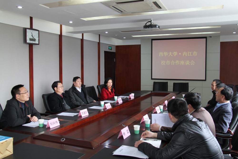 ????? 近日,內(nèi)江市政府副市長、市委秘書長侯志明,內(nèi)江市政府秘書長、辦公室主任、我校機制77級校友張?zhí)N書,內(nèi)江市科技局局長王仕平、副局長何文等一行5人來校洽談合作事宜。副校長蔡漢軍,地方合作與服務處處長王志剛、副處長王麗娟,科技處副處長劉興偉參加了座談。