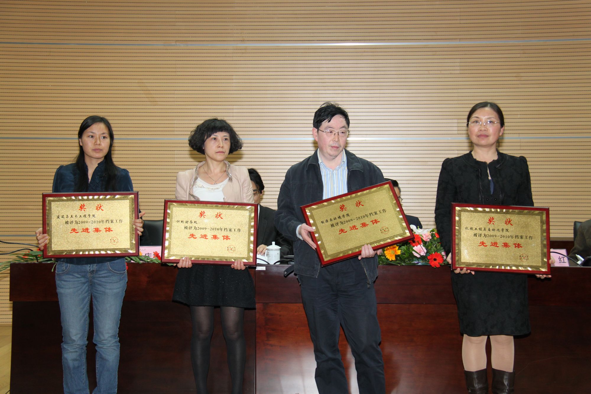 ????? 4月16日下午,我校2012年檔案工作暨先進表彰會在行政樓一樓報告廳舉行。四川省檔案局經濟科技檔案業務指導處處長林紅,學校檔案工作委員會副主任、副校長蔡漢軍,全校各單位檔案工作分管領導及專兼職檔案員參加了會議。校長辦公室主任、檔案館館長費凌主持會議。 ?????? 本次大會的主題是:全面總結學校貫徹落實教育部、國家檔案局聯合頒布的教育部27號令,即《普通高等學校檔案管理辦法》等情況,安排部署2012年學校檔案工作,表彰2009—2010年度學校檔案工作先進集體和個人。 ????? 會上,檔案館副館長朱慶華對我校近年來貫徹落實第27號令的有關情況進行了介紹。檔案館副館長岳猛宣讀了《西華大學關于表彰2009—2010年度檔案工作先進集體和先進個人的通知》。校黨委宣傳部(新聞中心)、學生工作部(處)、校長辦公室等10個單位獲先進集體稱號,劉敏、夏文光、程三三等40位專兼職檔案員獲先進個人稱號。 ????? 隨后,先進集體代表、黨委宣傳部(新聞中心)副部長山述蘭,先進個人代表、圖書館兼職檔案員劉敏分別就檔案工作的管理問題進行了經驗介紹。 ????? 林紅處長代表四川省檔案局對我校檔案工作所取得的成績表示肯定。他談到,西華大學的檔案工作全面貫徹落實了27號令和《四川省高等學校檔案管理辦理實施細則》的精神,始終把握“基礎工作規范化、隊伍建設專業化、服務工作人性化、檔案建設信息化、庫房管理制度化”的工作目標,取得了卓有成效的成績,學校檔案工作已走在了全省高校的前列。 ????? 蔡漢軍副校長對專兼職檔案員的辛勤工作表示感謝,對獲得先進稱號的集體和個人表示祝賀。同時,他強調,檔案關乎過去、現在和未來,過去的檔案是今天的財富,今天的檔案是明天的財富,也是認識和把握事物發展規律的鑰匙,是維護歷史真實面貌的重要事業,功在當代、利在千秋。希望各單位都要認識到檔案工作的重要性,進一步加強檔案管理工作,加強檔案資源建設;希望各位專兼職檔案工作者繼續發揚堅守平凡、創造非凡的敬業精神,為學校的發展做出更大的貢獻。 會場 先進集體領獎 先進個人領獎附:2009—2010年度檔案工作先進集體和先進個人名單 一、先進集體: 宣傳部(新聞中心)??????????學生工作部(處) 校長辦公室????????????????? 教務處(高等教育研究中心) 人事處????????????????????? 計劃財務處 建筑與土木工程學院??????????機械工程與自動化學院 能源與環境學院???????????? ?管理學院 二、先進個人(按姓氏筆畫排序) 王相平???王? 紅???鄧? 英???? 蘭? 虹??? 司? 健 孫仁云???孫曉璐?? 劉傳輝???? 劉? 敏??? 劉小兵 李? 藍???李? 輝?? 李? 紅?????吳? 燕??? 吳莉萍 但文莉???何太碧?? 張永莉???? 張? 燕??? 肖? 玲 邱? 健???陳? 利?? 陳? 蕓?????陳? 華??? 陳? 建 宋竹娟???青? 樹?? 周? 宏?????單紅梅??? 明? 紅 羅程靜???夏文光?? 袁永俊???? 龔巧漫????曹焜純 程三三???傅? 楠???彭? 怡?????蒲華慶? ? 蔡美嬌