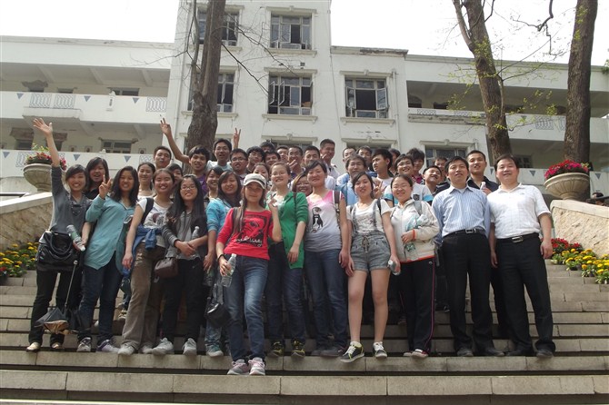 勤工助學崗位學生在彭州白鹿鎮“最牛教學樓”前合影 |