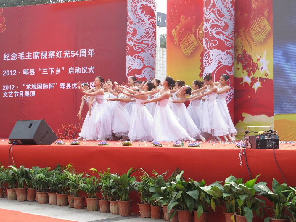 ????? 3月16日上午,由中共郫縣縣委宣傳部、郫縣服務業管理委員會主辦,中共紅光鎮委員會、紅光鎮人民政府、郫縣文化體育廣播電視和新聞出版局、郫縣總工會承辦的“和諧紅光 ,幸福之路” ——紀念毛主席視察紅光54周年暨2012“龍城國際杯”優秀社區文藝節目展演在紅光鎮廣場盛大舉行。