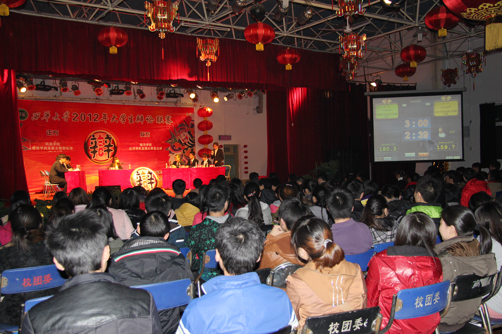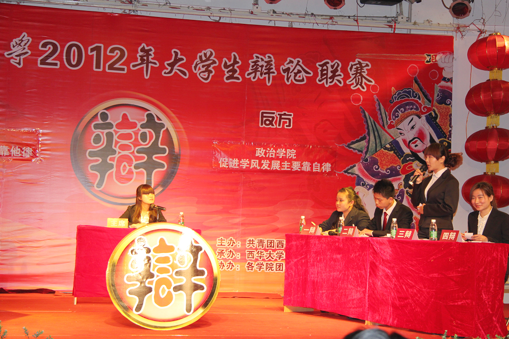 ???? 為了進一步加強校風、學風建設,營造良好的學術文化氛圍,3月13日晚7:00,我校2012年度大學生辯論聯賽在學生活動中心鳴鑼開戰。 ???? 首先登場的是政治學院和鳳凰學院,雙方圍繞“提高學風是靠自律還是他律”展開了激烈的辯論。作為曾經的辯論賽冠軍,政治學院在辯論中引經據典,展開強烈攻勢,鳳凰學院的辯手們也毫不示弱,辯手們的機智妙答引來一片喝彩。 ???? 第一戰略顯緊張,第二戰的辯手們心態就放松了不少,發揮也更加自如。電氣信息學院和材料科學與工程學院圍繞“網絡進宿舍是否有利于大學生學習”展開新一輪的唇槍舌戰。最終,政治學院、電氣信息學院攜手晉級下一輪比賽。賽后,評委們表示,今年的辯論聯賽比去年精彩許多,同學們都更加精心地準備,在辯論技巧方面也有一定提高。 ???? 辯論聯賽作為我校學生活動的傳統項目,迄今已連續舉辦了18屆,培養和鍛煉了一大批優秀的辯手。為更好地發揮辯論賽對校風、學風建設的促進作用,校團委推遲了辯論賽的比賽時間,并在上學期專門安排各學院進行了內部的選拔賽,擴大辯論賽在全校學生中的影響,同時,在選題上也緊扣校風、學風建設。 ???? 據悉,本次辯論聯賽共有20支參賽隊伍,從3月13日開始初賽,決賽將于4月20日舉行,歷時一個多月。