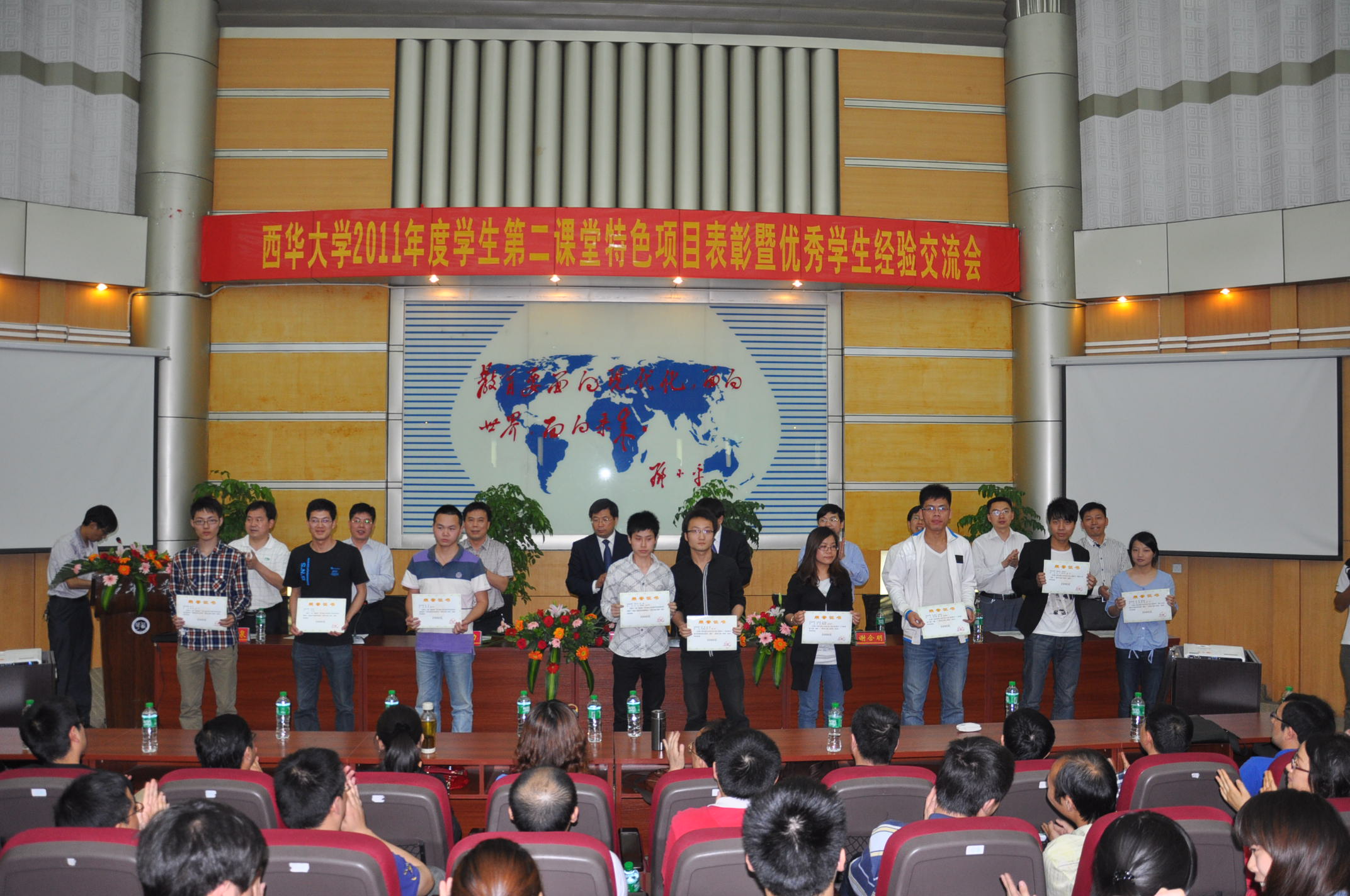 ????? 5月2日下午,學校在四教報告廳舉行2011年度學生第二課堂特色項目表彰暨優秀學生經驗交流會。校黨委副書記王小林,副校長王政書,黨委宣傳部、學生工作部、校團委、教務處、計劃財務處主要負責人,以及各學院分管學生工作負責人,獲獎學生,各學院學生代表近300人參加了會議。會議由學生工作部部長徐元彬主持。 ????? 本次表彰會,學校對2011年度學生第二課活動中的59項特色項目進行了表彰獎勵,獎勵金額近20萬元。會上,王政書副校長宣讀了《西華大學關于表彰2011年度“學生第二課堂特色項目”的決定》(西華學字【2012】35號)。與會領導為獲獎學生頒了獎。 ????? 獲獎學生代表、電氣信息學院張凱,指導教師代表、交通與汽車工程學院吳濤老師分別作了發言。 ????? 王小林副書記對獲獎同學表示祝賀,并就進一步抓好第二課堂提出了要求。他指出,第二課堂作為高校科技創新的重要載體,在推進校園文化和校風、學風建設發揮著重要作用,也必將成為同學們培養能力、提升素質的重要舞臺。他希望,第一、各部門要積極搭建平臺,精心組織和策劃第二課堂活動,要把第二課堂放在學校人才培養的高度,認真規劃。第二、希望各學院要把第二課堂,特別是其中的創新創業活動和競賽作為服務黨政中心工作、服務青年學生成長成才、促進素質教育的重要結合點和切入點,不斷擴大競賽參與面,使更多的學生得到鍛煉、獲得啟迪、激發潛能、從中受益。第三、希望同學們繼續保持崇尚科學、追求真理、勤奮好學、刻苦鉆研的精神狀態,把創新作為一項崇高的事業,敢于創新、勤于創新,在科技競賽、創新創業的天地里去開拓新的事業。最后, 王小林副書記用胡錦濤總書記在慶祝清華大學建校100周年大會上的講話寄語西華學子:“生長在這樣一個偉大時代,青年一代應該大有作為,也必將大有作為。讓我們緊緊攜起手來,志存高遠,腳踏實地,共同為我們偉大祖國、偉大民族更加美好的明天努力奮斗!” ????? 近年來,我校學生在科技活動、社會實踐、文化藝術、就業創業等方面取得了優異的成績,涌現出了像電氣信息學院鳳紅名、機械工程與自動化學院張宇涵、經濟與貿易學院平美生等一批科技競賽、科技創新、科技創業的典型人物。據統計,僅2011年,我校學生在參加國家、省、市級重大科技文化和藝術競賽活動中共獲國家級獎48項,省級獎81項。 ????? 表彰會結束后,科技創新代表張宇涵,科技創業代表平美生作了經驗交流。 ????? 對學生第二課堂活動特色項目獲獎學生進行隆重表彰,在我校尚屬首次,旨在大力表彰先進、樹立典型,在學校營造科技創新、科技創業的良好氛圍。據悉,學校為進一步加強學風、校風建設,采取了許多重要舉措。?學校出臺了學生第二課堂活動特色項目獎勵辦法,專門設立了特色項目獎勵基金,明確了學生參加第二課堂活動特色項目獎勵的標準及內容。 近日,學校將重新修訂《西華大學學生第二課堂活動特色項目獎勵辦法》。 ????? 學生第二課堂活動特色項目獎勵辦法的出臺以及學校的表彰獎勵,必將激發更多的西華學子參與到課外活動中去,奉獻自己的青春和智慧,必將對校風學風建設起到積極的推動作用。
