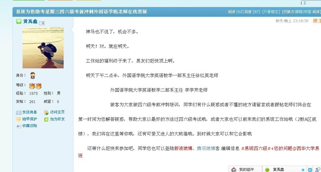 ????? 6月13日下午,由西華大學易班工作站、外國語學院和機械工程與自動化學院聯合舉辦的首屆易班四六級考前沖刺輔導成功舉行。