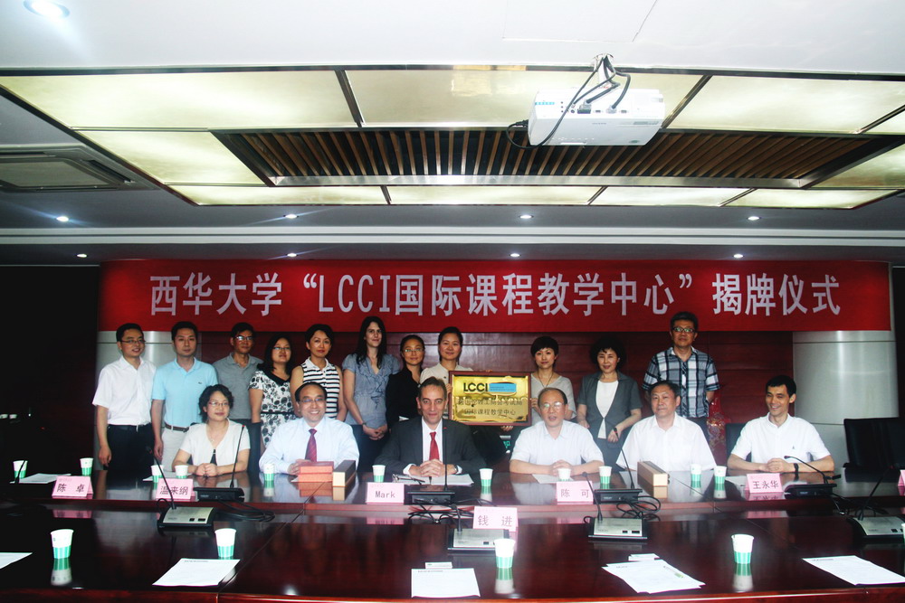 6月21日下午,在行政樓212會議室,副校長錢進代表學校與LCCI(英國倫敦工商會考試局)亞洲區總裁Mark Disney先生簽署了“LCCI國際課程教學中心”合作協議,并舉行了揭牌儀式。參加揭牌儀式的有教育部海外考試中心負責人陳可先生、LCCI中國市場發展中心教學負責人溫來綱先生、LCCI成都中心王永華總經理、LCCI成都教學總督Frances、LCCI廣州總經理陳卓女士;西華大學外國語學院黨委書記兼副院長陳達、經濟與貿易學院黨委書記兼副院長李雪玫以及主持工作副院長卓武揚、校辦副主任黃燕、國際合作與交流處相關負責人、管理學院有關老師和學生代表參加了揭牌儀式。
