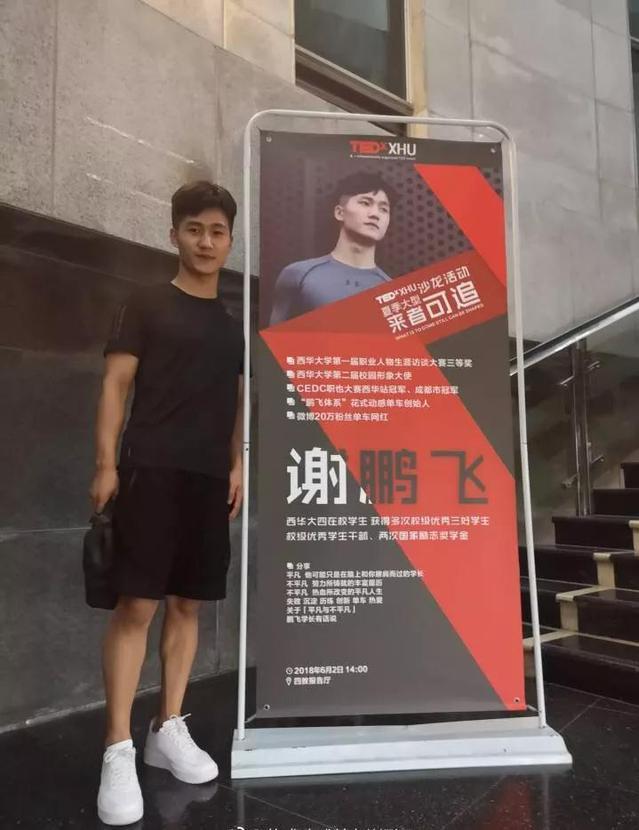 初見謝鵬飛是在一家咖啡館樓下,簡潔的運動裝扮、健壯的臂膀、標準的倒三角身材,即使素未謀面也能迅速從人群中認出他來。除了學(xué)生這個頭銜外,謝鵬飛還有兩個身份:專業(yè)動感單車教練和擁有22萬微博粉絲的網(wǎng)絡(luò)紅人。