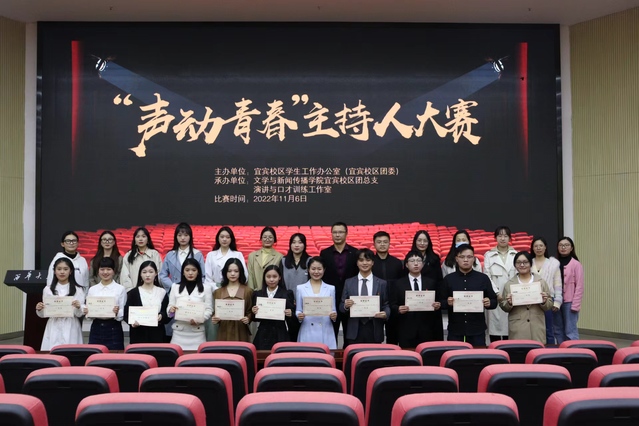 為豐富校園文化生活,展現(xiàn)宜賓校區(qū)學(xué)子們朝氣蓬勃的青春風(fēng)采,由宜賓校區(qū)學(xué)生工作辦公室(宜賓校區(qū)團(tuán)委)主辦,文學(xué)與新聞傳播學(xué)院宜賓校區(qū)團(tuán)總支、演講與口才訓(xùn)練工作室承辦的“聲動(dòng)青春”主持人大賽決賽于11月6日在一教101報(bào)告廳舉行。出席本次大賽的評(píng)委有宜賓校區(qū)黨工委副書記兼紀(jì)工委書記畢達(dá)平、機(jī)械工程學(xué)院輔導(dǎo)員薛敏、電氣與電子信息學(xué)院輔導(dǎo)員鄧艷梅、材料科學(xué)與工程學(xué)院輔導(dǎo)員鄒穎、外國(guó)語學(xué)院輔導(dǎo)員涂睿、管理學(xué)院輔導(dǎo)員張文鳳、汽車與交通學(xué)院輔導(dǎo)員李翠平、計(jì)算機(jī)與軟件工程學(xué)院輔導(dǎo)員鐘韜、文學(xué)與新聞傳播學(xué)院輔導(dǎo)員陳艷、袁夢(mèng)。