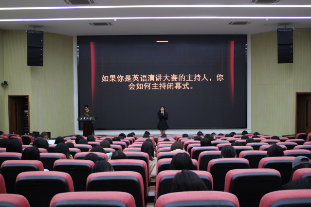 在精彩的開場(chǎng)舞表演活躍了現(xiàn)場(chǎng)氣氛后,比賽正式開始。在第一輪美文朗誦環(huán)節(jié),參賽選手們結(jié)合音頻、視頻、PPT等進(jìn)行展示。經(jīng)過激烈角逐,有11位選手順利進(jìn)入第二輪。即興主持非常考驗(yàn)選手們的語言能力以及應(yīng)變能力,選手們現(xiàn)場(chǎng)抽題,短暫思索后進(jìn)行主持表演,有的現(xiàn)場(chǎng)模擬中秋晚會(huì)開場(chǎng)白,有的解說100米決賽現(xiàn)場(chǎng),有的介紹運(yùn)動(dòng)會(huì)入場(chǎng)方陣。選手們反應(yīng)靈敏,自信從容,現(xiàn)場(chǎng)不時(shí)傳來鼓掌聲。