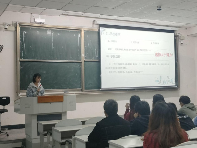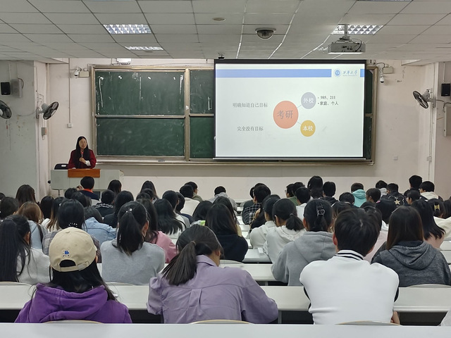 會上,院長王周玉從未來發展和經濟形勢兩個方面闡述了考研的意義,并重點講解了如何擇校的問題。她指出,當今社會越來越重視學歷,碩士比學士在未來發展與社會競爭中更具優勢和市場競爭力,提升學歷,繼續深造能促使同學們在成長成才中搶占先機。