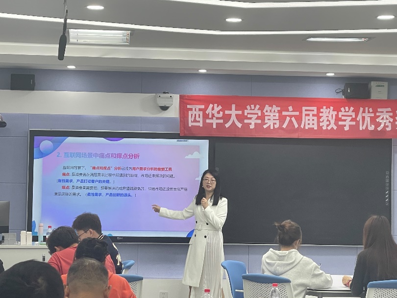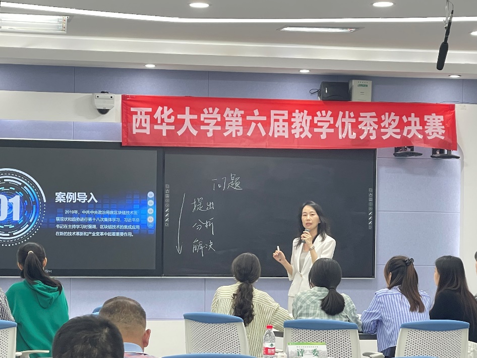 參賽教師的課堂教學(xué)內(nèi)容涵蓋工、理、管、法、經(jīng)、文、藝等多個學(xué)科門類。比賽不分組,統(tǒng)一進(jìn)行。每位參賽選手講課時間不超過20分鐘,參賽教師提前準(zhǔn)備了5個不同知識點(diǎn)的課堂教學(xué)節(jié)段,并在決賽開始前通過抽簽確定參賽的具體教學(xué)節(jié)段。比賽過程中,參賽選手儀態(tài)端莊、教態(tài)自然、精神飽滿、語言流暢、邏輯清晰,圍繞“以學(xué)生為中心”的教育理念,針對不同課型特點(diǎn),借助現(xiàn)代教學(xué)技術(shù),采用小組合作、支架式教學(xué)等多種教學(xué)方法,展現(xiàn)出西華教師們良好的精神風(fēng)貌和優(yōu)秀的職業(yè)素養(yǎng)。